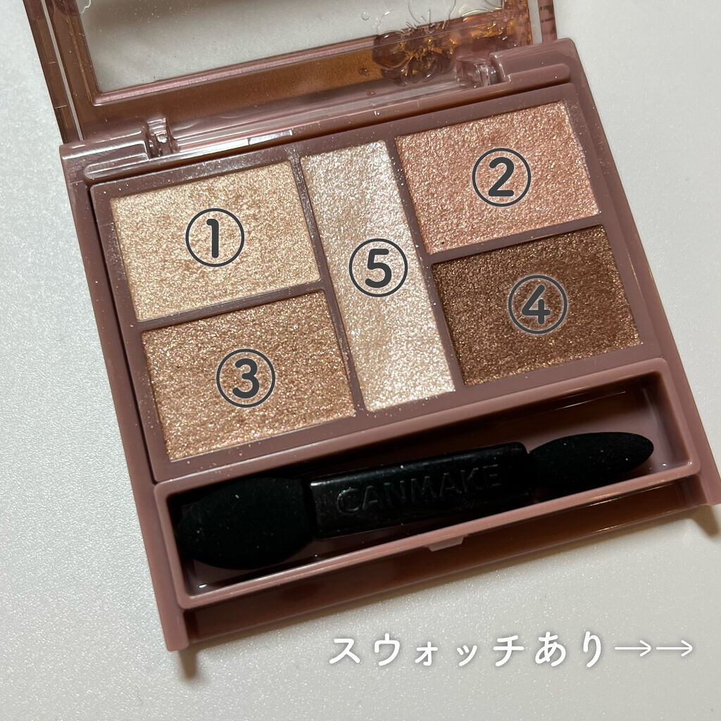 キャンメイクパーフェクトスタイリストアイズ24メロウミルクティー左上白みベージュラメ入り✨️右上オレンジみピンクラメ入り✨️真ん中ちょいピンクみホワイトラメ✨️左下ブラウンベージュラメ入り✨️右下イエベブラウンラメ入り✨️イエベ春、ブルベ夏向...