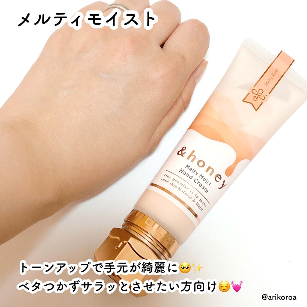🍯&𝐡𝐨𝐧𝐞𝐲モイストハンドクリーム🍯ハチミツ美容ハンドクリーム手肌の水分量に着目したハンドケア保水うるおいケア、ハチミツ美容──元々、&𝐡𝐨𝐧𝐞𝐲のヘアオイルやクレンジングは香り・使い心地、共にお気に入りでした✨ハチミツの甘い香りも成分も個...