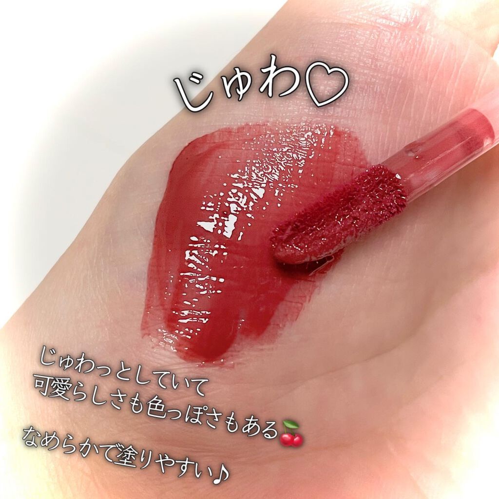 ヌーディカラーの透明感がある透き通ったような色づき。果汁シロップのようなぷるっと感なのにマスクにもつきづらくお値段もやさしいのでイチオシのリップです。 最初は2色だけと思っていたのですが、ヌーディーな可愛さに結局4色そろえてしまいました。似てるようで見比べると印象が全然変わるので気分でリップを変えてメイクを楽しんでいます💋 つやのある仕上がりでうるおいたっぷりの乾燥知らずのリップなのにティッシュオフしてもかなり色が残り、香りもいいので1本は試してみるのもオススメ!