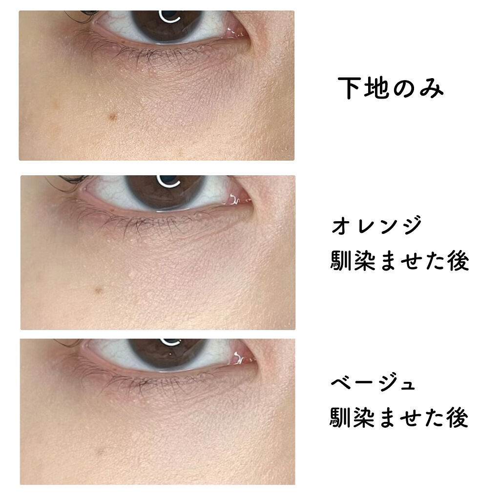 - ◆まるでクリームファンデ!伸びの良いコンシーラー 伸びがよく肌にしっとりフィットするテクスチャー。ファンデーションのように軽く塗り伸ばせるのにコンシーラーのカバー力も持ち合わせた、画期的なハイブリッド商品です。少量で隠したい箇所を的確にカバーできます。 ◆オレンジとスキンカラーの2色 目のクマ部分をカバーするオレンジと、肌の気になる部分をカバーするスキンカラーの2色セット。目の下にオレンジを入れることで、クマを隠して表情をパッと明るく。部分的にスキンカラーでカバーすることで、顔に立体感を与えながら抜け感のある肌を演出します。 ◆隠しながらしっかり素肌ケア オレンジには血行不良の青クマ、色素沈着の茶クマ、たるみの黒クマをトータルでケアする整肌成分※1、スキンカラーには肌荒れを防いでキメを整える整肌成分※2をたっぷり配合。メイクしながら気になる素肌をしっかりケアします。 ◆肌にやさしいフリー処方 シリコーン、鉱物油、界面活性剤、紫外線吸収剤、合成着色料(タール系色素)、香料、合成酸化防止剤不使用のフリー処方。専用クレンジングは不要で石けんタイプの洗顔料とお湯で落ちる設計です。パッチテスト・にきびのもとになりにくいことを確認するコンコメドジェニックテスト済みの肌にやさしい処方(すべての方に肌トラブルやにきびのもとができないわけではありません)。 ※1 ビタミン P 誘導体(グルコシルヘスペリジン)、トコフェロール、ビタミン K 様成分(アンズ核油、アボカド油、カニナバラ果実油、ヒマワリ種子油、ナットウガム)、ビオチン、リン酸アスコルビル Mg、無水ヒアルロン酸(ヒアルロン酸 Na) ※2 カンゾウ根エキス、グリチルレチン酸ステアリル、ビオチン、テトラヘキシルデカン酸アスコルビル、ウンデシレノイルフェニルアラニン、トコフェロール
