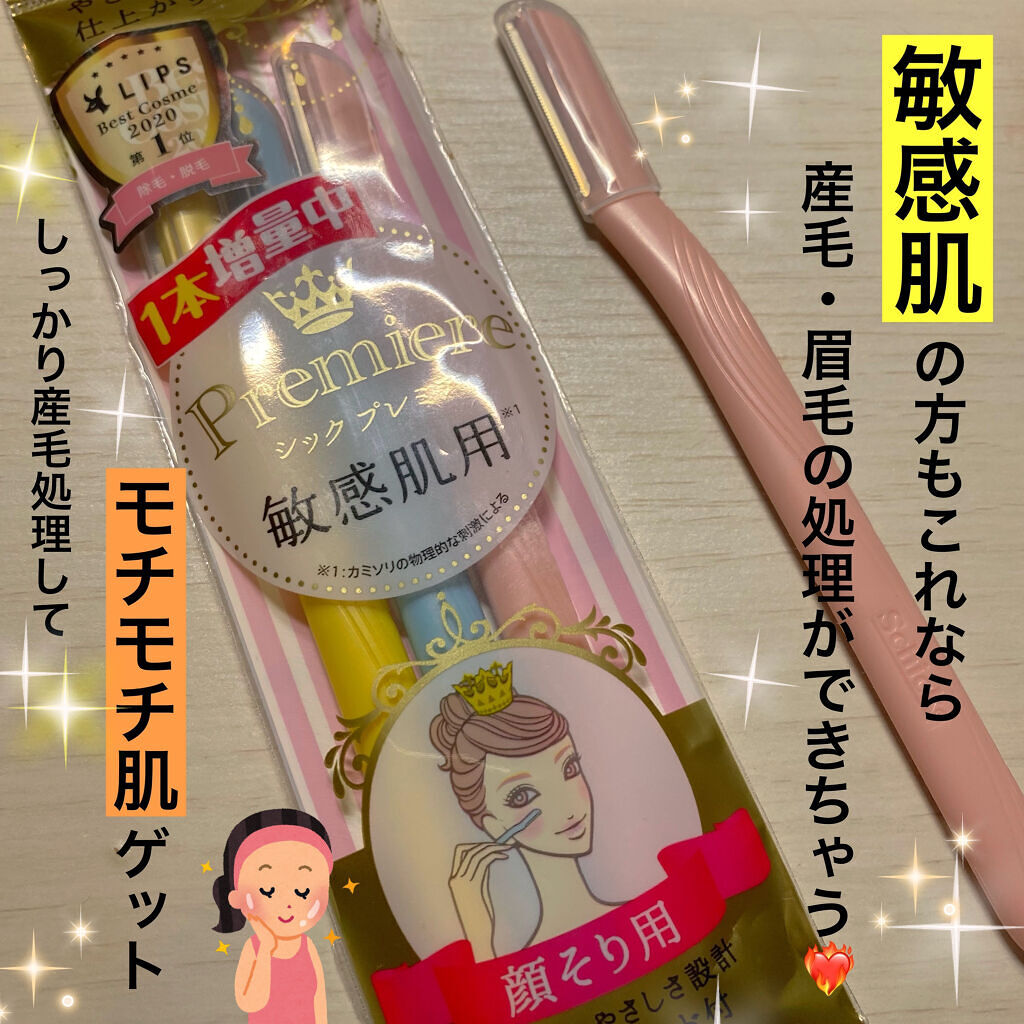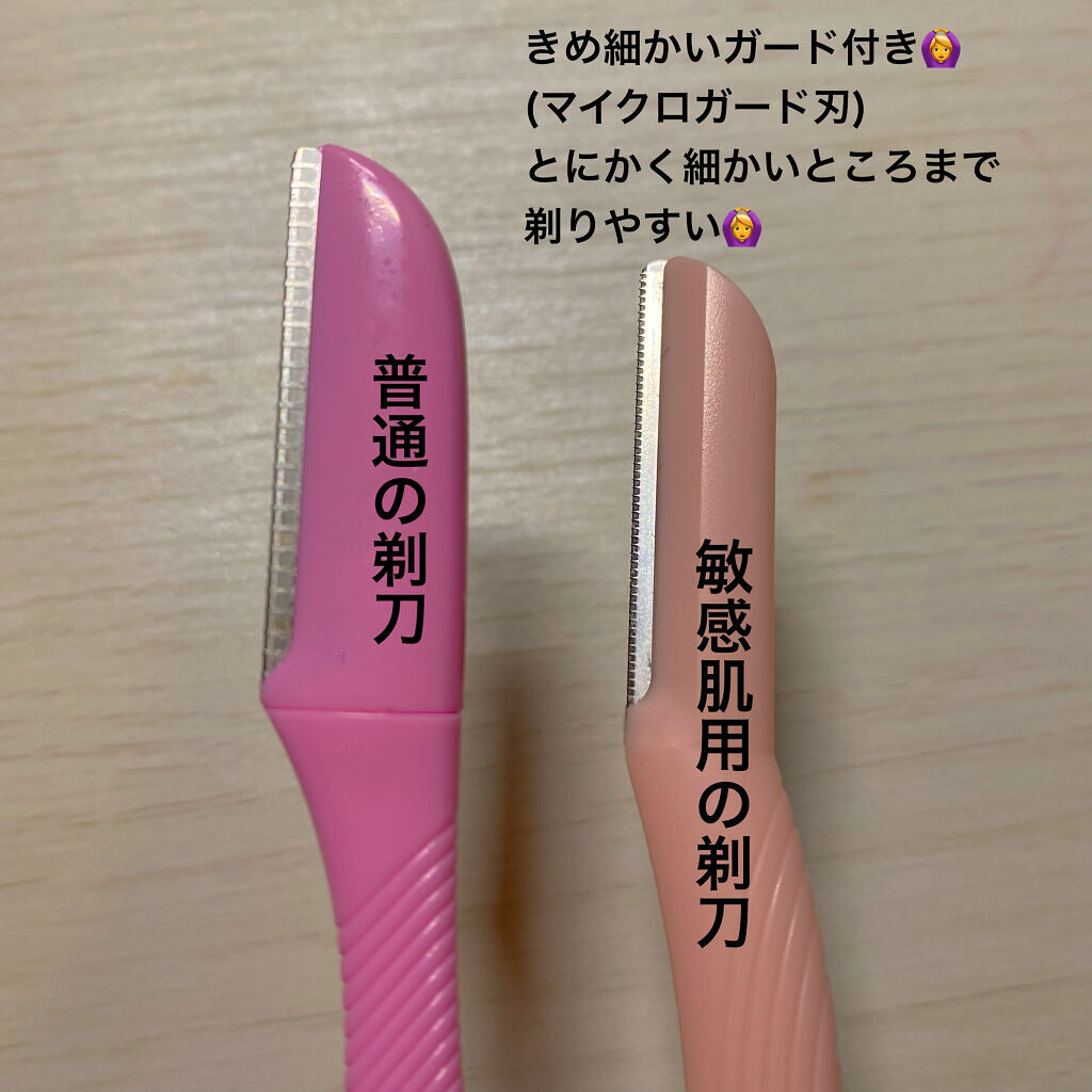 産毛処理って結構面倒くさいんですが、メリットたくさんあるのでまだやったことない人は是非この機会に産毛処理やってみて欲しいで♡♡ 敏感肌用って書いてあるとおり、マイクロガード刃のおかげで肌に優しく、乾燥しずらくなっています!! 1.保湿クリームやシェービングジェルを 顔にまんべんなく塗る 2.4ページ目の画像の矢印の方向に向かってカミソリを動かす 3.剃り終えたら洗顔をして、化粧水と保湿 クリームを塗ってしっかり保湿する