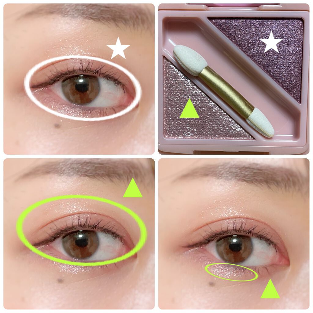 【使った商品】アイシャドウ、ハイライト、リップ【手順】1.Cを、アイホール全体にぼかして、下まぶたの涙袋にも入れて2.Bを、二重幅と下まぶたの三角ゾーンに入れる3.Aを、まぶたの中央と、涙袋の真ん中に入れる4.ハイライトをいれて5.リップで、...