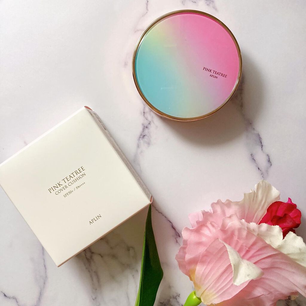 APLIN ピンクティーツリーカバークッション 21号ライトベージュ 2,490円(税込) 少量でよく伸びてハイカバー! 赤みやくすみをしっかりカバ一できるのに、厚塗り感のないなめらかな仕上がり♡ ハイカバーなのにナチュラルなツヤ感とサラッとしつつ、乾燥崩れしにくい仕上がりに感動します!!
