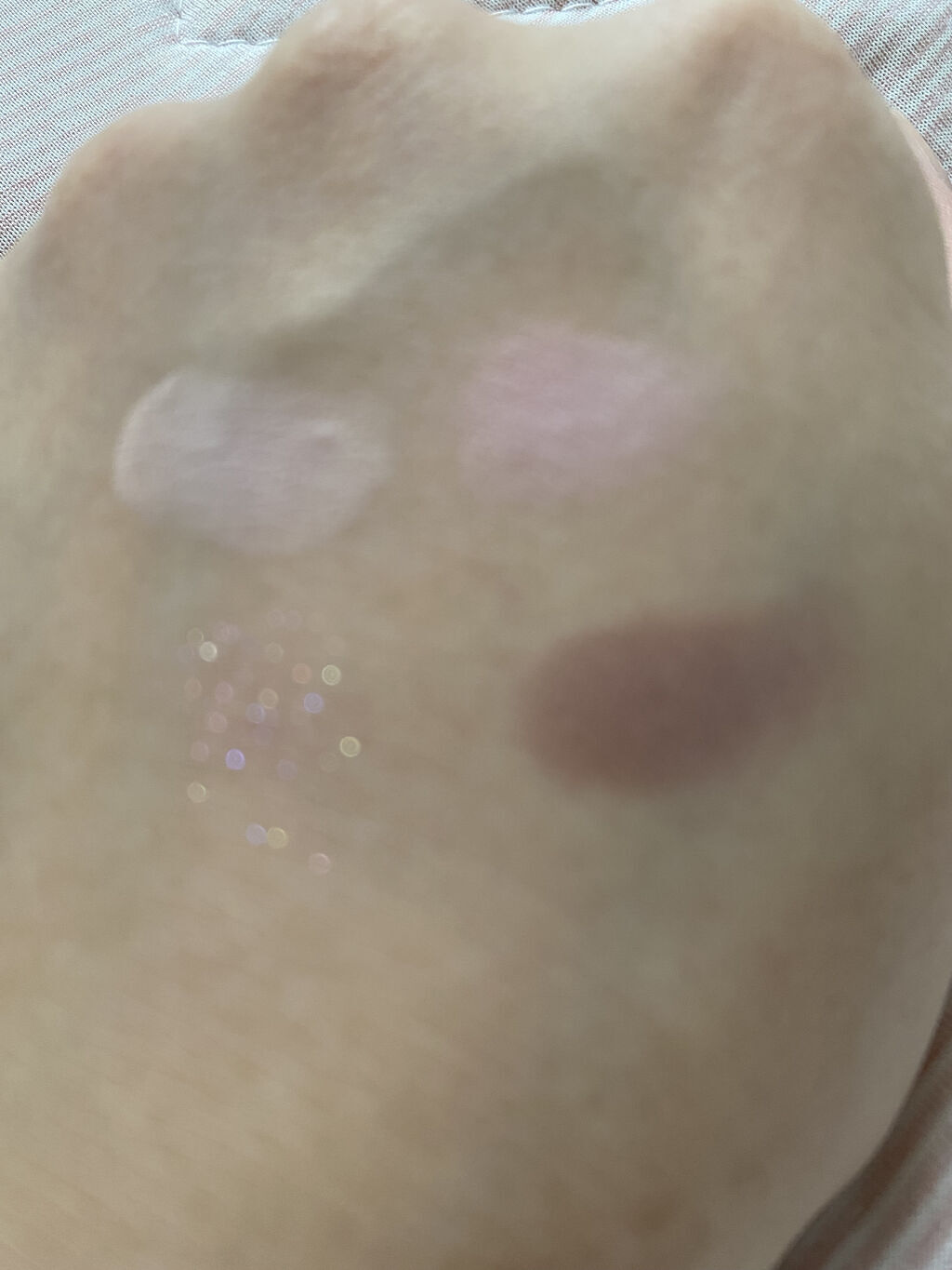 白みたっぷりのミルキーラベンダーカラー🪻 粉質が柔らかくて発色の調節がしやすい!粉飛びもほとんどなし! ラメが夢かわカラーで最高!🦄 チークも白みがあるものをよく合わせて使っています 白みのおかげで涙袋に載せた時に発色が良いし色がとにかく可愛い! ふわふわ雰囲気が出せる