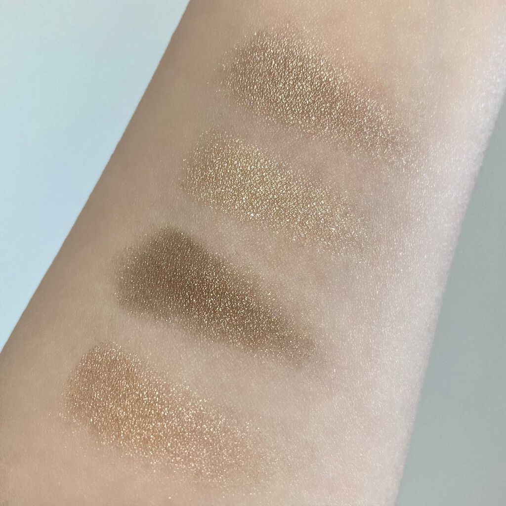 プライマーを使って、密度の高い感じのブラシで 左下ローズを置くように塗る。 ぼかすのは境目だけにして、しっかり色を出す。 右下のダークブラウンと思っていた濃い色は メイクしてみたら結構紫っぽく出たんですが これがまぁくすみ感が強くて…w くすみは何より苦手だよ😂😂 右上のラメはぺかっと光るのがとっても良い!!🤩 割とシンプルなメイクになるな~と思うけど しっかり色出せたので無事使っていけそうです💃🏼💓