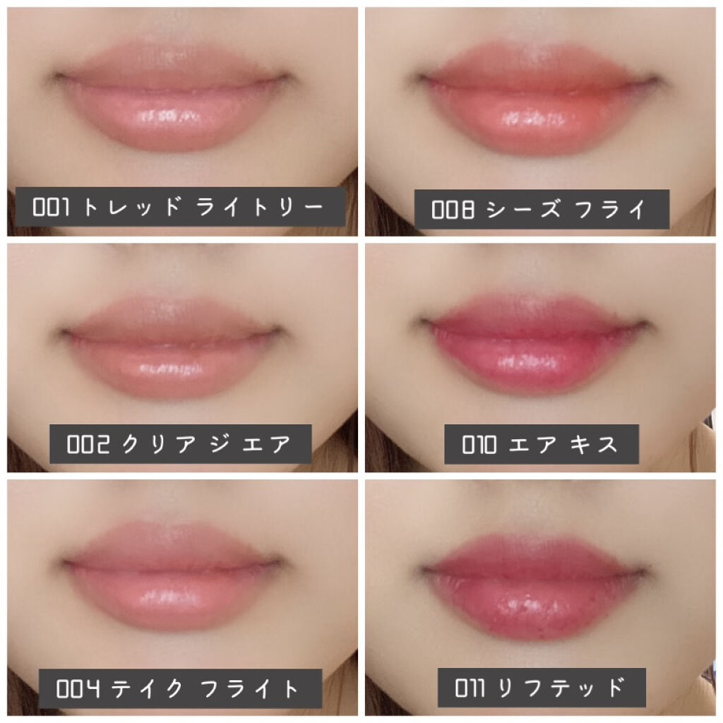 - <001 トレッド ライトリー> イソドデカン、カプリリルメチコン、合成ワックス、リンゴ酸ジイソステアリル、ポリブテン、ベヘン酸セテアリル、シリカ、マンゴー種子油、テトラ(ジ-t-ブチルヒドロキシヒドロケイヒ酸)ペンタエリスリチル、安息香酸ベンジル、香料 [+/-] マイカ、合成フルオロフロゴパイト、硫酸Ba、ロジン、酸化チタン、酸化鉄、マンガンバイオレット、赤201、赤202、黄5、青1 <002 クリア ジ エア> イソドデカン、カプリリルメチコン、合成ワックス、リンゴ酸ジイソステアリル、ポリブテン、ベヘン酸セテアリル、シリカ、マンゴー種子油、テトラ(ジ-t-ブチルヒドロキシヒドロケイヒ酸)ペンタエリスリチル、安息香酸ベンジル、香料 [+/-] マイカ、合成フルオロフロゴパイト、硫酸Ba、ロジン、酸化チタン、酸化鉄、マンガンバイオレット、赤201、赤202、黄5、青1 <003 スフレ オール デイ> イソドデカン、カプリリルメチコン、合成ワックス、リンゴ酸ジイソステアリル、ポリブテン、ベヘン酸セテアリル、シリカ、マンゴー種子油、テトラ(ジ-t-ブチルヒドロキシヒドロケイヒ酸)ペンタエリスリチル、安息香酸ベンジル、香料 [+/-] マイカ、合成フルオロフロゴパイト、硫酸Ba、ロジン、酸化チタン、酸化鉄、マンガンバイオレット、赤201、赤202、黄5、青1 <008 シーズ フライ> イソドデカン、カプリリルメチコン、合成ワックス、リンゴ酸ジイソステアリル、ポリブテン、ベヘン酸セテアリル、シリカ、マンゴー種子油、テトラ(ジ-t-ブチルヒドロキシヒドロケイヒ酸)ペンタエリスリチル、安息香酸ベンジル、香料 [+/-] マイカ、合成フルオロフロゴパイト、硫酸Ba、ロジン、酸化チタン、酸化鉄、マンガンバイオレット、赤201、赤202、黄5、青1 <010 エア キス> イソドデカン、カプリリルメチコン、合成ワックス、リンゴ酸ジイソステアリル、ポリブテン、ベヘン酸セテアリル、シリカ、マンゴー種子油、テトラ(ジ-t-ブチルヒドロキシヒドロケイヒ酸)ペンタエリスリチル、安息香酸ベンジル、香料 [+/-] マイカ、合成フルオロフロゴパイト、硫酸Ba、ロジン、酸化チタン、酸化鉄、マンガンバイオレット、赤201、赤202、黄5、青1 <011 リフテッド> イソドデカン、カプリリルメチコン、合成ワックス、リンゴ酸ジイソステアリル、ポリブテン、ベヘン酸セテアリル、シリカ、マンゴー種子油、テトラ(ジ-t-ブチルヒドロキシヒドロケイヒ酸)ペンタエリスリチル、安息香酸ベンジル、香料 [+/-] マイカ、合成フルオロフロゴパイト、硫酸Ba、ロジン、酸化チタン、酸化鉄、マンガンバイオレット、赤201、赤202、黄5、青1 <004 テイク フライト> イソドデカン、カプリリルメチコン、合成ワックス、リンゴ酸ジイソステアリル、ポリブテン、ベヘン酸セテアリル、シリカ、マンゴー種子油、テトラ(ジ-t-ブチルヒドロキシヒドロケイヒ酸)ペンタエリスリチル、安息香酸ベンジル、香料 [+/-] マイカ、合成フルオロフロゴパイト、硫酸Ba、ロジン、酸化チタン、酸化鉄、マンガンバイオレット、赤201、赤202、黄5、青1