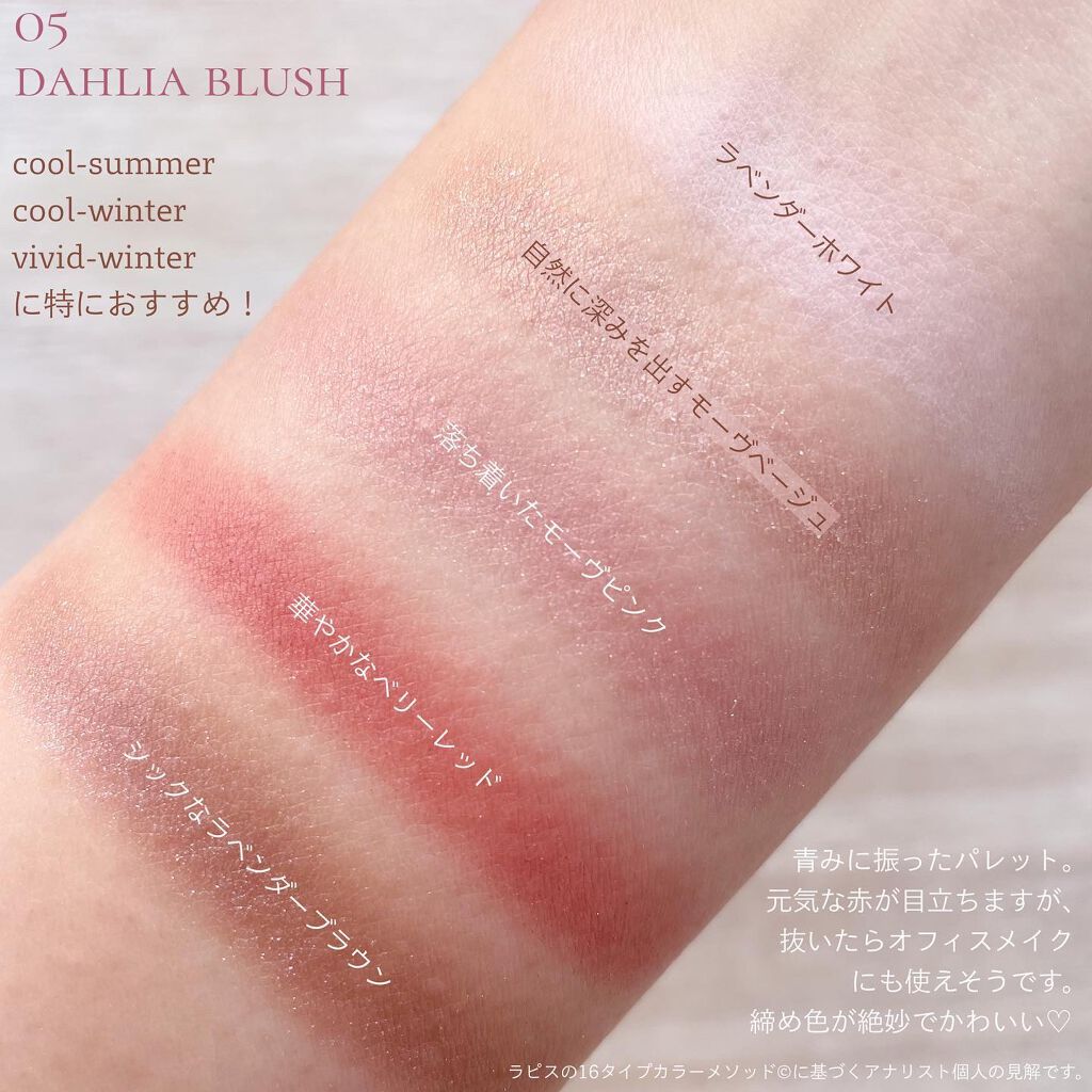 全28色という選びきれない色展開… 絶妙なおしゃれカラーがたくさんあるので、 困り果てて15色も購入してしまいました😮💨✨ マット・パール・ニュアンサーの3つの質感に 分けられていますが、中でも特にニュアンサーが人気! 重ねて使って印象チェンジができるものです。 でもマットもパールもかわいすぎて…🤦🏻♀️ どれも頬にふわっと溶け込むような発色なので、 慣れていなくても付けすぎることなく安心♡ ムラにもなりにくいですよ〜! 私のいちおしは002pのhazy sunset! みなさんもぜひお気に入りを見つけてくださいね🥰