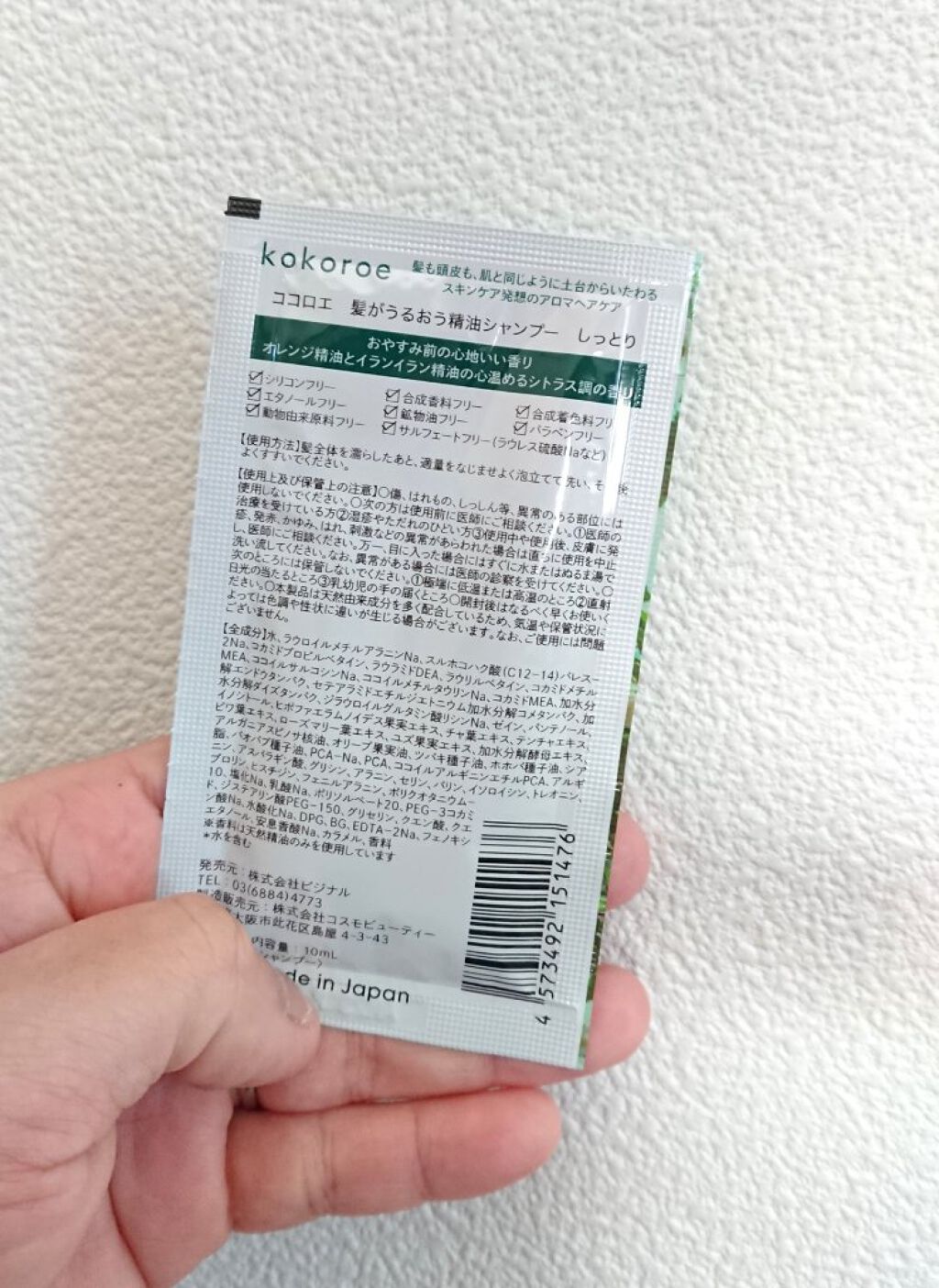 商品詳細情報kokoroe 髪がうるおう精油シャンプー/トリートメント しっとり