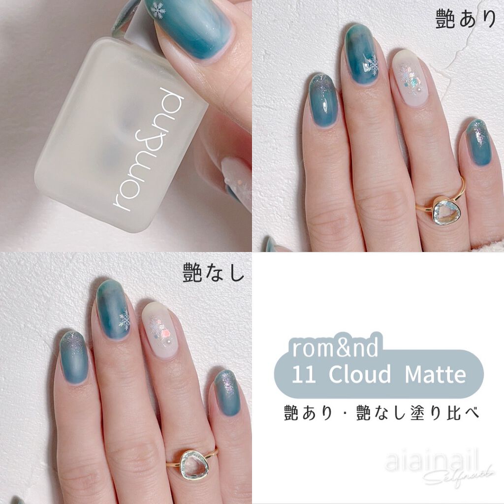 - 指先に玉石のような、ならかな光沢をとどめる。塗った瞬間から綺麗なツヤと光沢を維持し、重ねて塗っても透き通ったカラー感を鮮やかにとどめる、素早い乾燥力のナチュラルカラーネイル。「ロムアンド」の次世代型ネイルです。