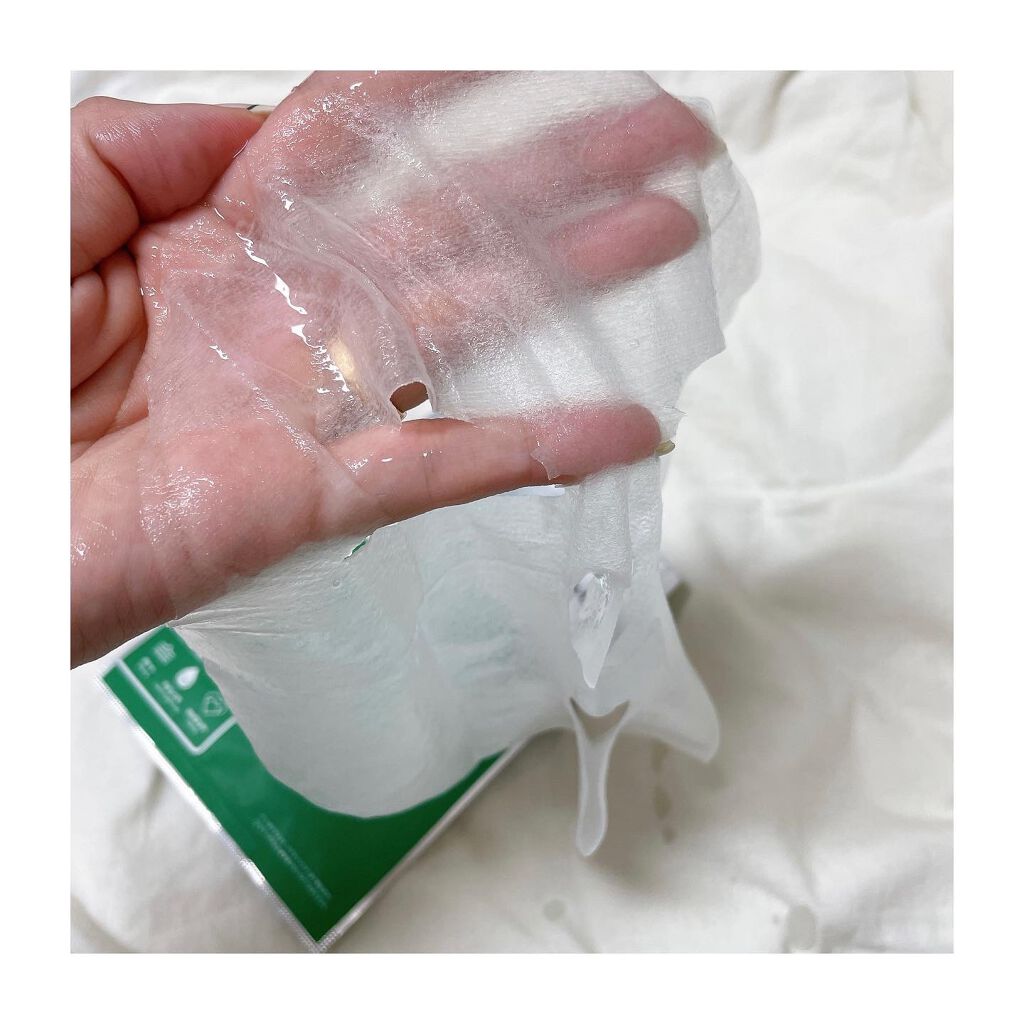 薄手の密着力が高いシートです!とろみのある美容液がたっぷり含まれています🌿 CICAが配合されていて肌荒れを防いでくれるので、肌荒れが気になる時によく使っています! パック後は肌の赤みが落ち着きますし、もっちりとしてキメの整った肌になります😌