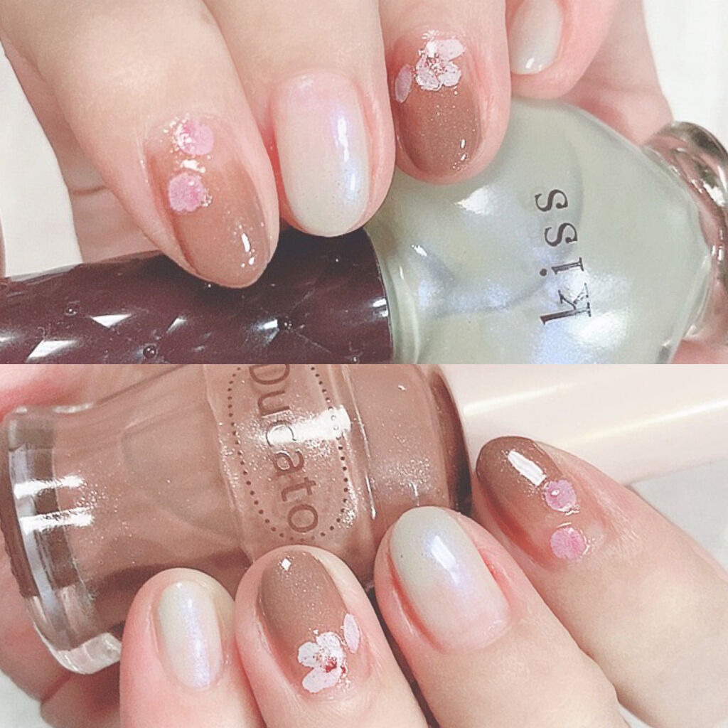 CANMAKEのオールスター揃いで、ナチュラルなデートネイルにしたよ♡今日は相方の母とデート❤そんな時はふんわりやさしいカラーと少しのオシャレ感出したいっ!!グラデーションは手が込んでる風が出せるので、簡単に手早く出来るファンデーションカラー...