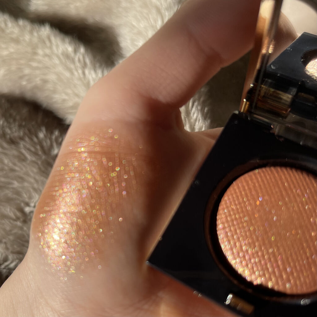ADDICTIONの秋コレのパレットの中に入っているのに気づかず単色をお迎えしてしまいました😂笑 いざ単色で手に取ってみると可愛すぎて…! 太陽光での撮影なので少し暖かい感じに写っています。 1枚目でぎっしりの多色ラメ、伝わりますか?🥺 シンプルなメイクにたっぷり乗せてあげるのが可愛いです♡