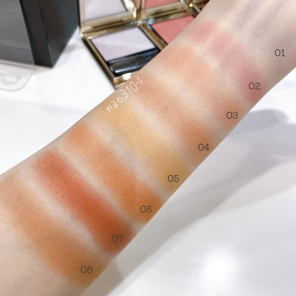 わずかにくすんでいることで甘くなり過ぎず上品で春らしいカラー 優しくふんわりと彩り、大人の可愛らしさを際立たせる パウダーチークではないようなじゅわっと発色も素敵 発色が良いので少なめにのせて調整するとのせすぎを防げます 粉質はしっとり 01 瑞泡 と組み合わせた時のピンクもとても可愛いです