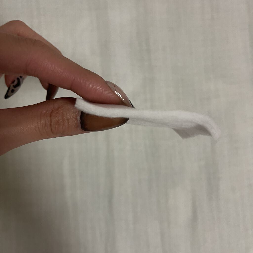 イオンで購入したTOPVALUのコットンパフです。こちらは200枚入で値段も安く、サイズがダイソーのコットンケースにぴったりなので何回もリピしてます🙆端の抑えの部分が取れやすくはありますが、拭き取りに使う分には顔に繊維がついたり毛羽立ちやすか...