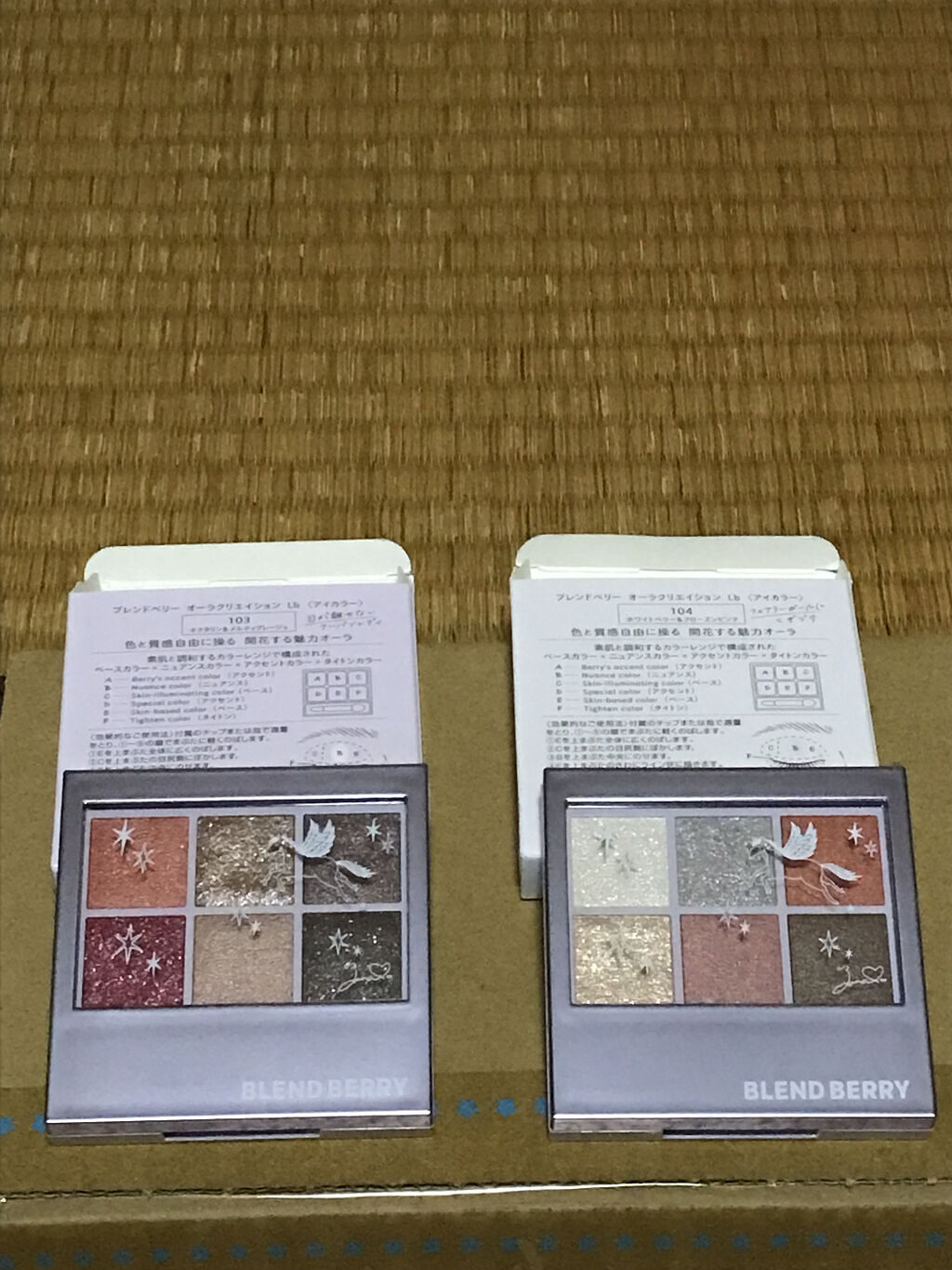 左下のベリーのようなピンクを二重幅まで。その上の、左上のコーラルをまぶたに。 真ん中の上段ラメをまぶたに足し右下のカーキを目尻に使用しました。 涙袋には、真ん中の下段を使用して 涙袋影には、右上のグレーを使用して全色しっかり使いました♫ BLEND BERRYはやっぱり可愛い❤️