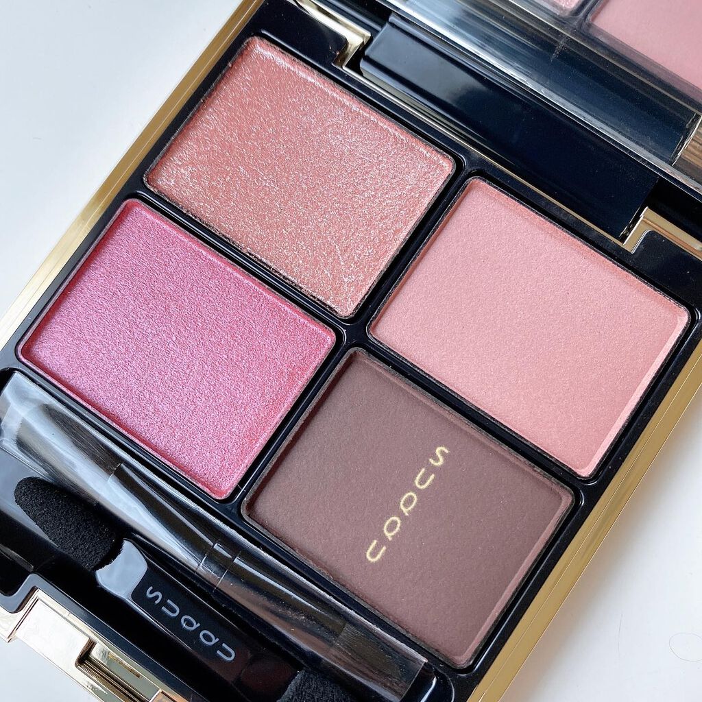 【SUQQU】✔️デザイニングカラーアイズS03霜花赤みブラウンがシックで惹かれたこちら…マット3色にラメが1色と潔い配色なのも好きです!甘艶のラメを控えめにしてくすませた感じかなーとおもいつつなんか外視感あるなと思ったら廃盤になったカネボウ...