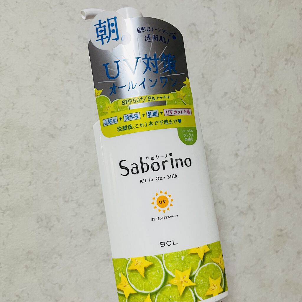サボリーノおはよううるおいミルクUVHC〈化粧水・美容液・乳液・化粧下地〉130ml¥1500(税抜)ハーバルシトラスの香りサボリーノからでたこれ1本でUV対策オールインワン!!!洗顔後これ1本で化粧水、美容液、乳液、UVカット下地まで完成し...
