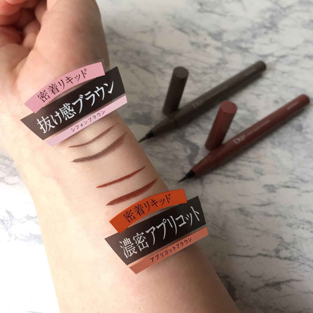 - 筆先までずっとなめらか、目尻で感動するリキッドアイライナー。 必要な量が肌にのる新設計で、まぶたの上をすべるような、滑らかな描き心地。しなやかでコシのある筆が、筆圧のコントロールを容易にし、太いラインも細いラインも思い通りに仕上げます。水、汗、涙に強いウォータープルーフタイプなのに、通常洗顔で簡単オフ。肌に色素が残らない顔料を使用。5種類の美容液成分を従来品の200%配合し、メイクしながら目元ケアまで。 ●ブラウンブラック ※2020年9月12日 バラエティショップ先行発売 ●漆黒ブラック ※2020年12月頃発売予定 ●ナチュラルブラウン ※2020年12月頃発売予定 ●シフォンブラウン 「毎日メイクに透明感と抜け感」 ブラウンでも、グレーでも、ベージュでもないニュアンスカラー。 自然な印影で素の目元を際立て、頑張りすぎない、ふんわりとした目元に。 ●アプリコットブラウン 「じゅわっと血色感。 肌に馴染むおしゃれカラー」 温かみのあるアプリコットがじゅわっと滲む血色感を目元に演出。 肌馴染みが良いので、カラーライナーに抵抗がある方もブラウンの延長線上で楽しめる、使いやすい色味です。 ”ちょっとオシャレ”な空気感を演出するカラー。 ●ピンクショコラ アイライナー 「ピンクが溶け込む濃厚ブラウン」 肌馴染みが良く、目元にじんわり血色感をプラス。 さりげなく女性らしさが加速するようなカラー。 ●ピスタチオラテ (2022年7月29日(金)発売) 「“目尻”に抜け感アクセント」 肌に馴染むのに映える絶妙なグリーン。 トレンドカラーに“くすみ”と“抜け感”をプラスしたまろやかな発色。 ●マスタードブラウン 「“イエロー”が揺れる、大人の洒落色」 (2022年7月29日(金)発売) まるで太陽のような暖かさを感じる新しいブラウン。 ほんのり感じるイエローでメイクが一気に垢抜ける稀有な色。 ●シフォンピンク(2023年2月10日発売) 「ふんわり柔らか"まろみピンク"」 甘くなりすぎない青みニュアンスで目元の透明感UP。 目元を引き締め、ピンクメイクにありがちな腫れぼったさを解消。 ●ミルクカプチーノ(2023年4月21日発売) まろやかな深みの“優しい締め色” どんなメイクにも合わせやすいカラー。 自然な陰影でさりげなく目幅を拡張します。 ●グレーカシミア(2023年10月1日発売) ブラウンがほんのり溶け込んだ、暖色グレー まろやかな発色で、パーソナルカラーを問わず肌に馴染む 目元の陰影になりすまし、抜け感と目力を欲張りに叶える ●ダークフィグ(2024年6月1日発売) するする”なめらか。描きやすいのに、落ちにくい。 クッキリ可愛いほの甘ダークブラウン ●ピーチモカ(2024年8月1日発売) ふわっと自然に盛れる“桃色ブラウン” ほんのり血色感で目元にうるみ感を演出 ●スターダストブラウン(2024年12月11日発売) キラッと繊細に輝く''星屑ブラウン'' 透け感のあるダークブラウンの色味とラメの輝きが、目元に艶のある立体感を演出 ●チャコールモカ(2025年4月10日発売) 目元を締める''深みグレージュ'' 黄みや赤みに偏りすぎない絶妙な色設計で、自然に目元を強調
