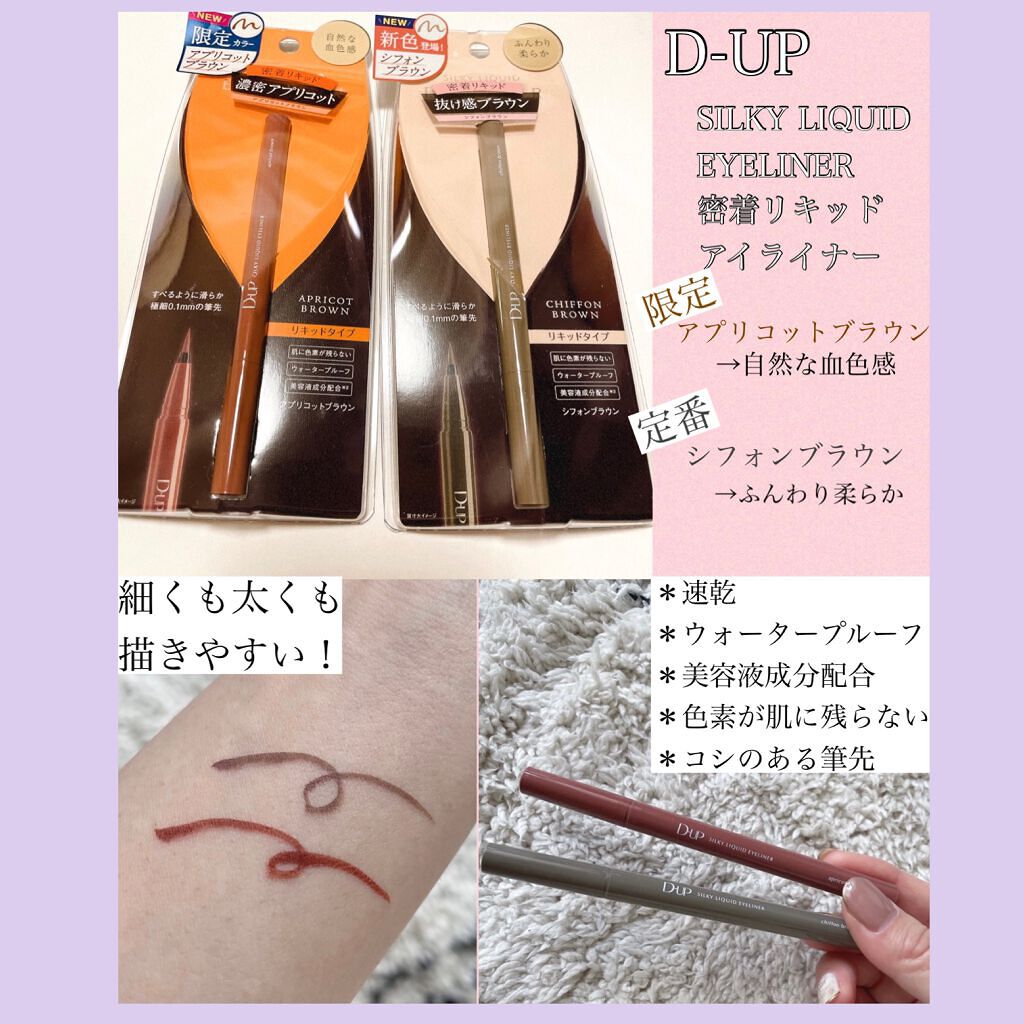 D-UPの大人気アイライナー!シルキーリキッドアイライナーWPから、初のラメライナーが登場しました🙌🏻💕 星屑を散りばめたような繊細な輝き…スターダストブラウンが新色で発売に✨️ しなやかでコシのある極細0.1mmの筆先で、滑らかな描き心地が叶います😍!