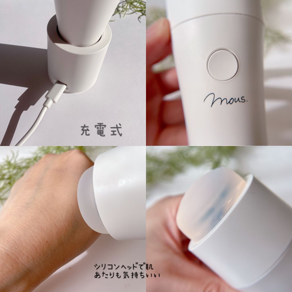 ヘッドが特殊ジェルでプルンッと柔らかいからお肌に負担なく優しくフィットしてくれました♪ じんわり暖かいのが気持ち良くリラックスできます🍀 振動は微細振で負担もなく心地よいです。 デザインが、とってもスタイリッシュでオシャレ🙌✨ 防水で充電式のワイヤレスなので夜のバスタイムの時にケアできるのもポイント高い💡