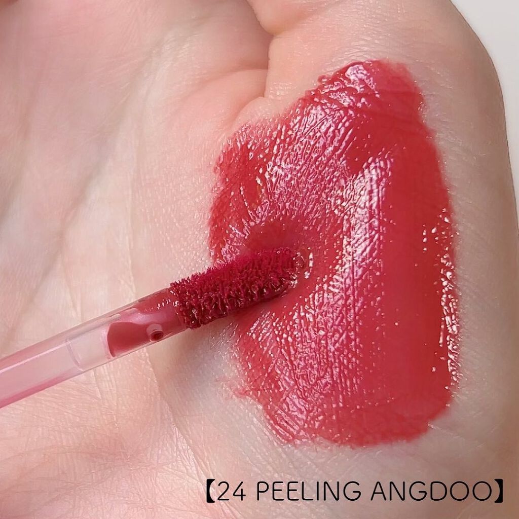 - <06 フィグフィグ(FIGFIG)> 水、オクチルドデカノール、ジメチコン、変性アルコール、アクリレーツコポリマー、ステアリン酸ソルビタン、エチルセルロース、ベヘニルアルコール、ペンチレングリコール、キウイエキス、パパイア果実エキス、グレープフルーツ果実エキス、ココヤシ果実エキス、マンゴー果実エキス、グアバ果実エキス、ポリソルベート60、シリカ、(アクリル酸Na/アクリロイルジメチルタウリンNa)コポリマー、リンゴ酸ジイソステアリル、トリイソステアリン酸ポリグリセリル-2、イソヘキサデカン、ポリソルベート80、ジイソステアリン酸ポリグリセリル-2、オレイン酸ソルビタン、エチルヘキシルグリセリン、BG、EDTA-2Na、フェノキシエタノール、香料、酸化チタン、酸化鉄、赤202、赤227、黄5、赤102、青1 <07 ジュジュブ(JUJUBE)> 水、オクチルドデカノール、ジメチコン、変性アルコール、アクリレーツコポリマー、ステアリン酸ソルビタン、エチルセルロース、ベヘニルアルコール、ペンチレングリコール、キウイエキス、パパイア果実エキス、グレープフルーツ果実エキス、ココヤシ果実エキス、マンゴー果実エキス、グアバ果実エキス、ポリソルベート60、シリカ、(アクリル酸Na/アクリロイルジメチルタウリンNa)コポリマー、トリイソステアリン酸ポリグリセリル-2、リンゴ酸ジイソステアリル、イソヘキサデカン、ポリソルベート80、ジイソステアリン酸ポリグリセリル-2、オレイン酸ソルビタン、エチルヘキシルグリセリン、BG、EDTA-2Na、フェノキシエタノール、香料、酸化チタン、酸化鉄、赤202、赤227、黄5、黄4、青1 <08 アップルブラウン(APPLE BROWN)> 水、オクチルドデカノール、ジメチコン、変性アルコール、アクリレーツコポリマー、ステアリン酸ソルビタン、エチルセルロース、ベヘニルアルコール、ペンチレングリコール、キウイエキス、パパイア果実エキス、グレープフルーツ果実エキス、ココヤシ果実エキス、マンゴー果実エキス、グアバ果実エキス、ポリソルベート60、シリカ、(アクリル酸Na/アクリロイルジメチルタウリンNa)コポリマー、トリイソステアリン酸ポリグリセリル-2、イソヘキサデカン、リンゴ酸ジイソステアリル、ポリソルベート80、ジイソステアリン酸ポリグリセリル-2、オレイン酸ソルビタン、エチルヘキシルグリセリン、BG、EDTA-2Na、フェノキシエタノール、香料、酸化鉄、黄5、赤202、酸化チタン、赤227、青1 <11 ピンクパンプキン(PINK PUMPKIN)> 水、オクチルドデカノール、ジメチコン、変性アルコール、アクリレーツコポリマー、ステアリン酸ソルビタン、エチルセルロース、ベヘニルアルコール、ペンチレングリコール、キウイエキス、パパイア果実エキス、グレープフルーツ果実エキス、ココヤシ果実エキス、マンゴー果実エキス、グアバ果実エキス、ポリソルベート60、シリカ、(アクリル酸Na/アクリロイルジメチルタウリンNa)コポリマー、リンゴ酸ジイソステアリル、イソヘキサデカン、トリイソステアリン酸ポリグリセリル-2、ポリソルベート80、ジイソステアリン酸ポリグリセリル-2、オレイン酸ソルビタン、エチルヘキシルグリセリン、BG、EDTA-2Na、フェノキシエタノール、香料、酸化チタン、酸化鉄、赤202、黄4、赤227、黄5、赤104(1) <22 ポメロスキン(POMELO SKIN)> 水、オクチルドデカノール、ジメチコン、変性アルコール、アクリレーツコポリマー、ポリソルベート60、エチルセルロース、ベヘニルアルコール、ペンチレングリコール、(アクリル酸Na/アクリロイルジメチルタウリンNa)コポリマー、シリカ、ステアリン酸ソルビタン、イソヘキサデカン、リンゴ酸ジイソステアリル、フェノキシエタノール、酸化チタン、トリイソステアリン酸ポリグリセリル-2、ポリソルベート80、酸化鉄、香料、オレイン酸ソルビタン、エチレンジアミンジコハク酸3Na、エチルヘキシルグリセリン、赤202、ジイソステアリン酸ポリグリセリル-2、赤227、黄5、青1、BG、キウイエキス、パパイア果実エキス、グレープフルーツ果実エキス、ココヤシ果実、マンゴー果実エキス、グアバ果実エキス <23 ヌカダミア(NUCADAMIA)> 水、オクチルドデカノール、ジメチコン、変性アルコール、アクリレーツコポリマー、ポリソルベート60、エチルセルロース、ベヘニルアルコール、ペンチレングリコール、(アクリル酸Na/アクリロイルジメチルタウリンNa)コポリマー、シリカ、ステアリン酸ソルビタン、イソヘキサデカン、フェノキシエタノール、リンゴ酸ジイソステアリル、酸化チタン、ポリソルベート80、トリイソステアリン酸ポリグリセリル-2、酸化鉄、香料、オレイン酸ソルビタン、エチレンジアミンジコハク酸3Na、赤202、赤227、黄5、ジイソステアリン酸ポリグリセリル-2、エチルヘキシルグリセリン、黄4、青1、BG、キウイエキス、パパイア果実エキス、グレープフルーツ果実エキス、ココヤシ果実、マンゴー果実エキス <24 ピーリングエンドゥ(PEELING ANGDOO)> 水、オクチルドデカノール、ジメチコン、変性アル
