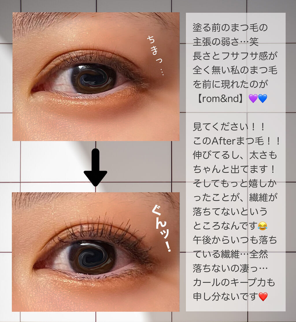 ロムアンドさまからいただきました!✨rom&nd ハンオールフィックスマスカラ L02ロングアッシュ✨リピ買いが多いらしいrom&ndのハンオールフィックスマスカラ!初めて使ってみたけどリピする気持ちがわかる‼️ダマにならず塗りやすいし繊維入...