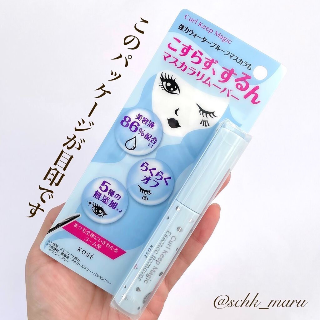 - 強力ウォータープルーフマスカラもこすらず、するん! カールキープマジックからまつ毛想いのマスカラリムーバーが登場。 ● ウォータープルーフのマスカラもこすらず、するんと落とせるマスカラリムーバーです。 ● イージーリムーブ成分配合。マスカラに素早くなじみ、ゴシゴシこすらずスムーズにするんと落とします。 ● 美容液86%※1。まつ毛保護成分配合。傷みやすいまつ毛をいたわります。 ● 5種の無添加※2 設計です。 ● まつ毛へのなじみがよく、エモリエント効果の高いオイルを配合。目もとの乾燥感やツッパリ感のない使い心地です。 ● まつ毛全体にいきわたるコーム型が1本1本に均一になじみ、マスカラの落とし残しなくきれいにオフできます。 ● お湯で落とすタイプのマスカラにもご使用いただけます。 ※1 保湿・エモリエント成分 ※2 無香料・無着色・アルコール(エチルアルコール)フリー・パラベンフリー・シリコーンフリー