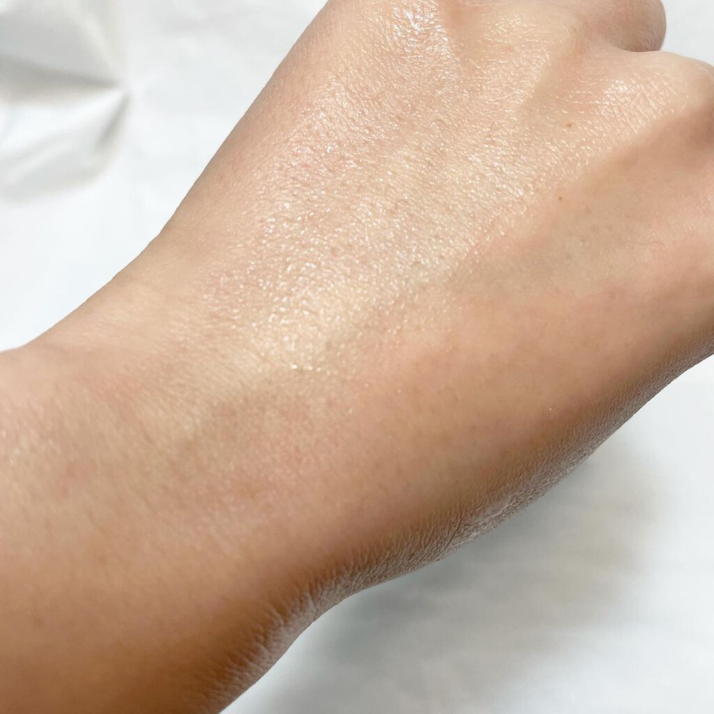 60%以上がウォーターベースなのでしっとりとした着け心地♡ さらにパール表面に貴金属コーティングをしているため全ての角度で同じ反射効果があります✨ チップを使って塗るので簡単で、手が汚れなくて便利👏🏻 とにかく使用感が良くてしっとりとしていて、密着度が高い✨ みずみずしい使い心地です。 ラメが飛ぶこともありませんでしたよ◎ キラッキラで、綺麗な輝き🥺💓 ピーチライトはお肌に馴染みやすい色味でとても使いやすいです♪ 上品なグリッターで、毎日大活躍中です🍑