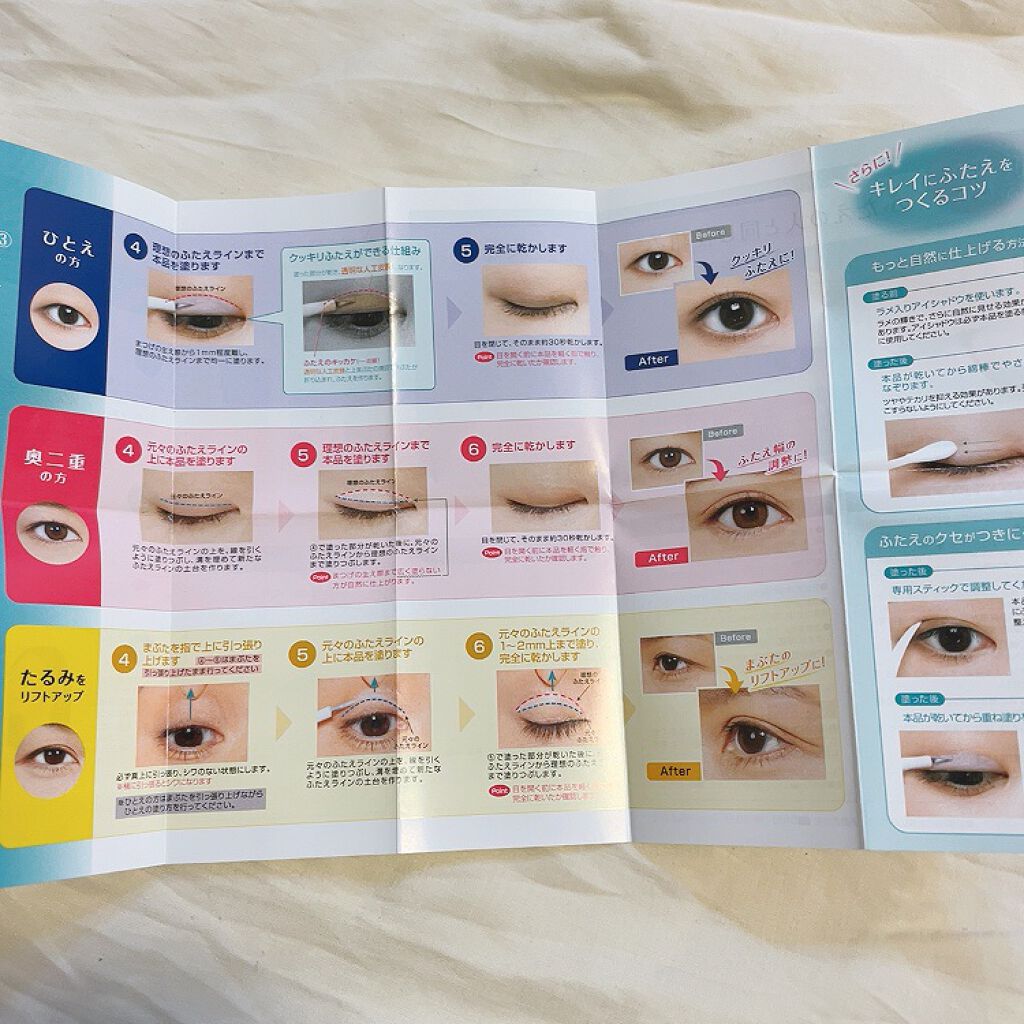 - 2020年6月3日 膜が強くなってリニューアル発売! 塗って乾かすだけのふたえ整形フィルム。見えない膜がふたえをつくり、自然なふたえが完成します。非接着タイプでまぶたを貼り付けないので、目を閉じても自然な仕上がり。まばたきしてもつっぱりません。水・汗に強いウォータプルーフでクッキリふたえをキープ。うるおい成分のヒアルロン酸・コラーゲン配合。