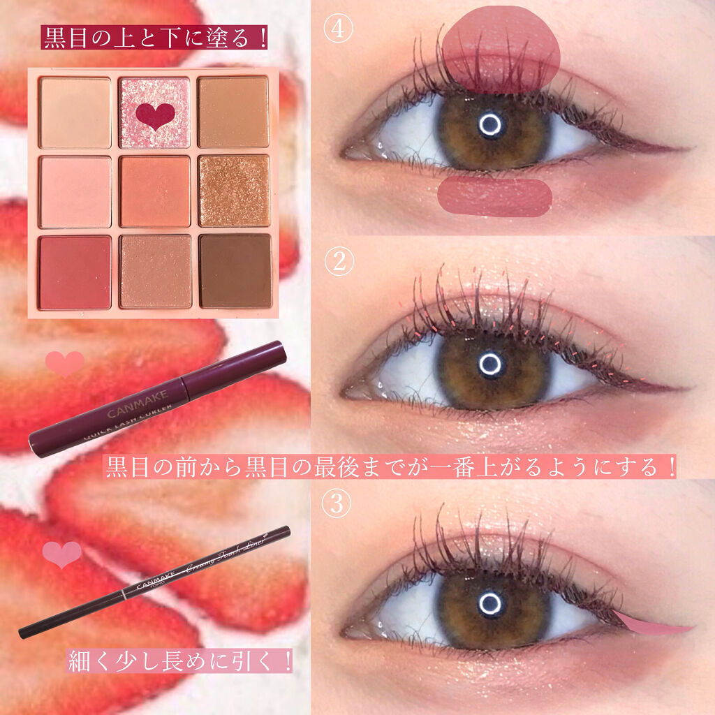 ピンクのアイシャドウだけど腫れぼったくならないメイクです💄 キラキラのラメが可愛くて、透明感を出してくれます💎 全てプチプラで、可愛いメイクができるので是非真似してみてください♪