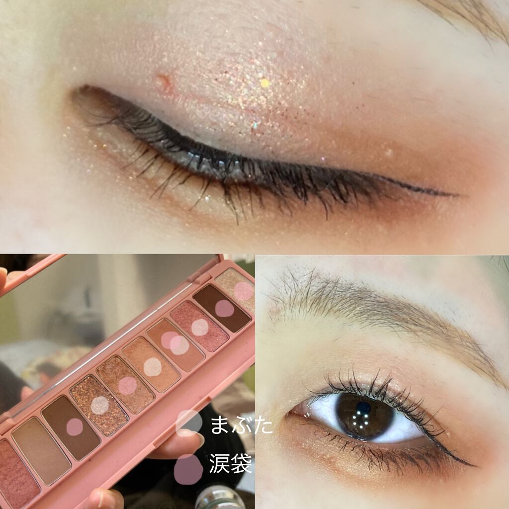 色白ブルベさんにぜひ使ってほしいパレット💓 薄づきのパステルピンクが女の子らしくて、普段濃いめのメイクの私はオフィス用のナチュラルピンクメイクに使っていこうと思いました ラメがサラサラ系なのてたくさん塗ってキラキラさせてもよし、ほかのパレットから足してみても良しです! ⚠️このパレットのラメはちょっとラメ飛びしやすい🥲 今日のメイクは、マスカラを強めに発色させてバランスを取ってみたよ💓