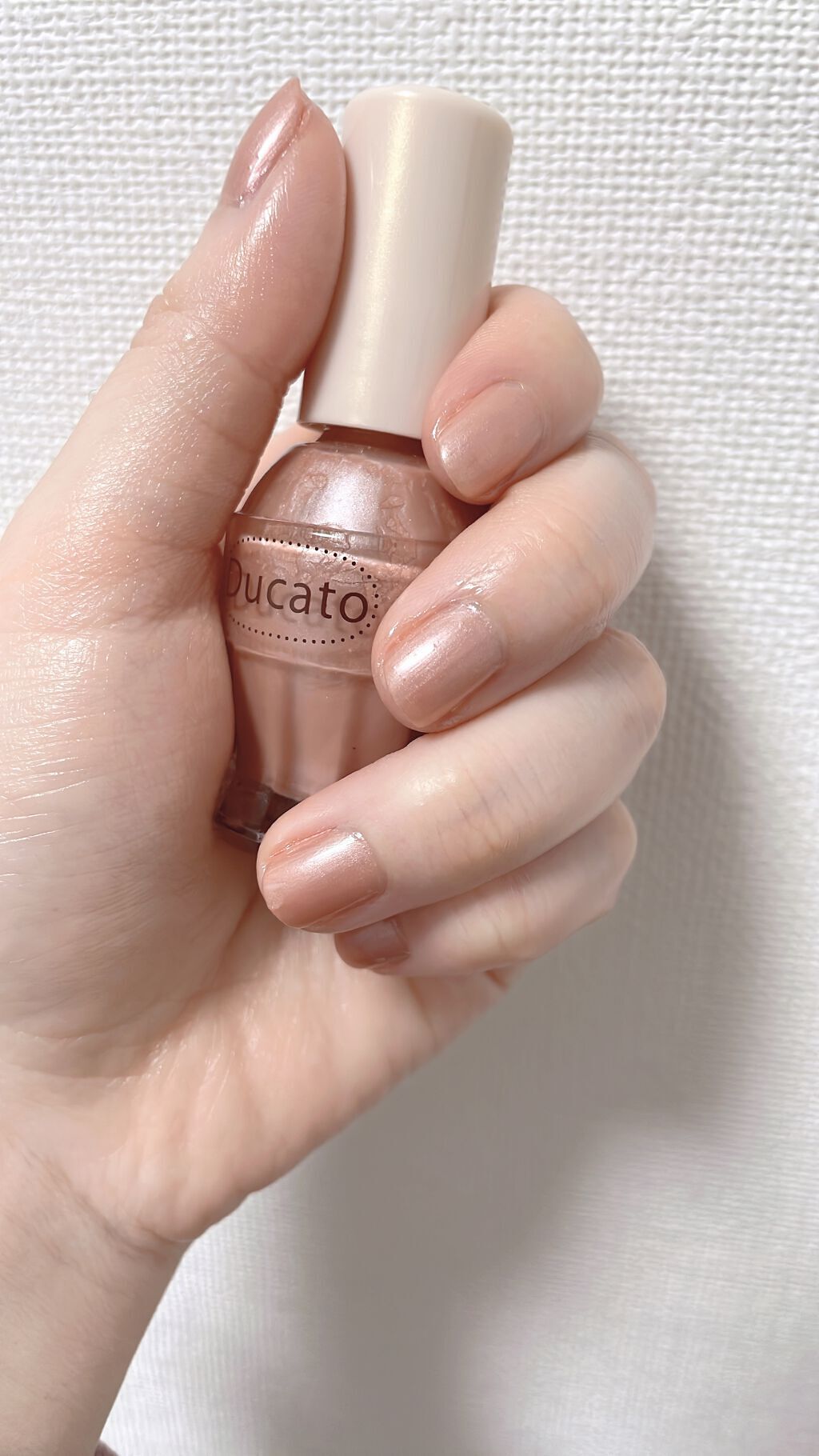 【使った商品】デュカートナチュラルネイルカラーN015でセルフネイルしてみました!ちなみに画像は二度塗りの状態です🙋♀️【商品の特徴】ナチュラルな発色でお仕事の時にも使いやすい色です💪あとCANMAKEやexcelのマニキュアに比べて乾きが...