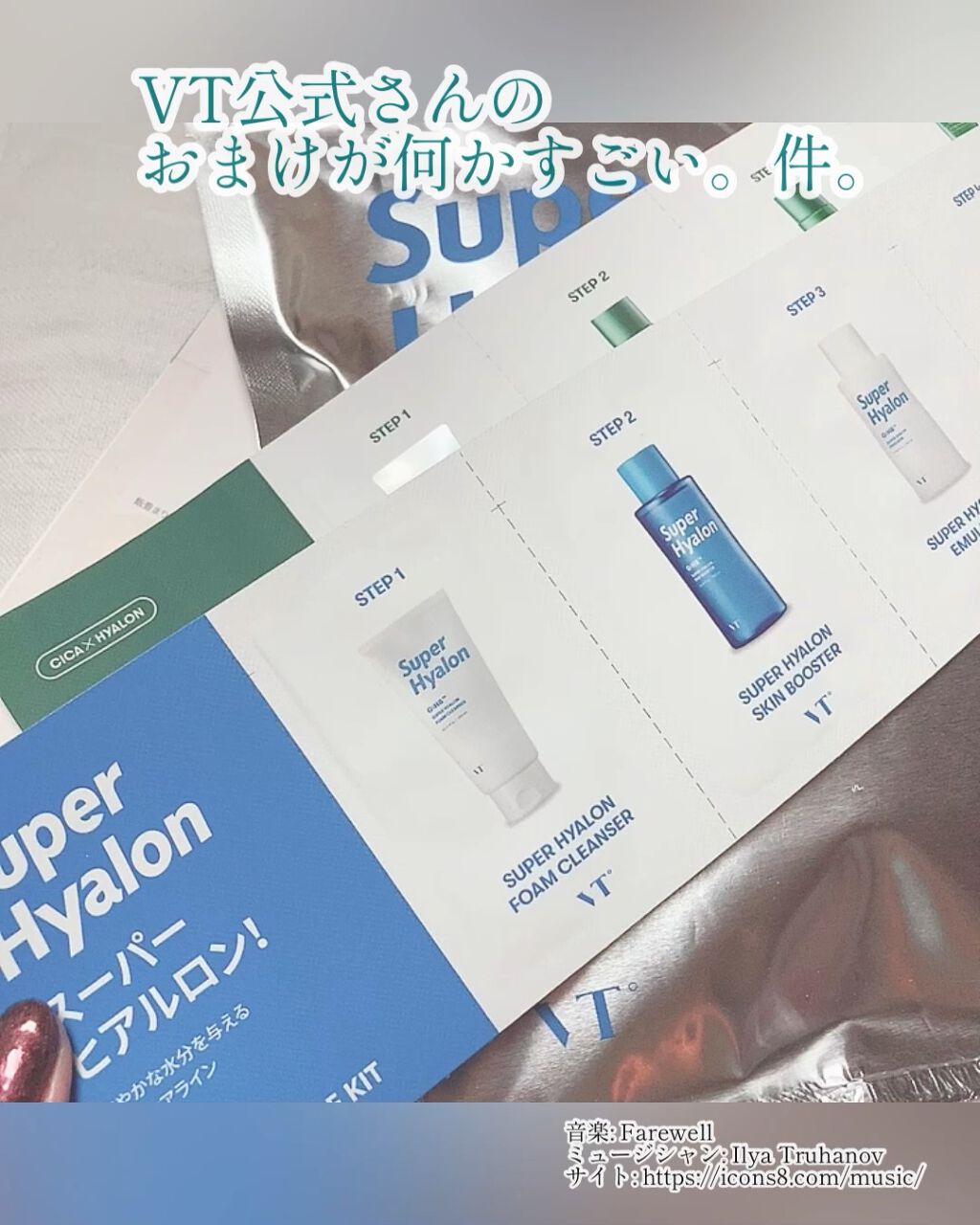 (めも)VTCosmeticsサンプルVTスーパーヒアルロンスキンブースターVTスーパーヒアルロンエマルジョンVTスーパーヒアルロンクリームめっちゃ良かった!!水分補給って感じ✨✨1回しか試してないから未確定だけど、スキンケア直後も翌朝も潤っ...