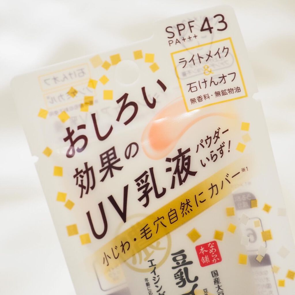 - ほうれい線・小じわのメイクよれが気になる方におすすめの日中用カバーUV 乳液です。リニューアルしたなめらか本舗エイジングケア*1ライン共通の、滋賀県産たまほまれ使用の豆乳発酵液*2とピュアレチノール*2を配合しています。リンクルリフレクト効果で、ほうれい線や小じわを目立たなくし、時間が経ってもメイクよれが気にならない処方を採用しました。お肌にうれしいノンケミカル(紫外線吸収剤不使用)処方で、洗顔後これ 1 つでスキンケアからベースメイクまで完成。 乾燥による小じわを目立たなくします(効能評価試験済み)。 SPF43・PA+++、石けんでオフできます。 *1年齢に応じたお手入れ *2保湿成分