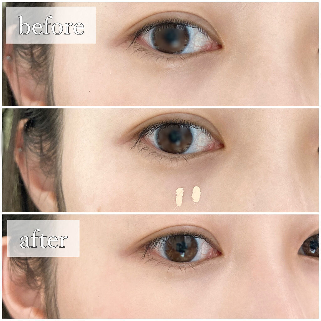 コンシーラーって厚塗り感出ないのに、肌の色むらなくなるし、毛穴カバーしてくれるし、素晴らしいアイテムですよね。 保湿力とツヤ感がとにかくすごいです。 ツヤ感が高いので、ハイライト効果もあって肌がグンと明るくなります。 伸びと肌なじみも抜群。 なじませるのが簡単なので、とっても使いやすいです。