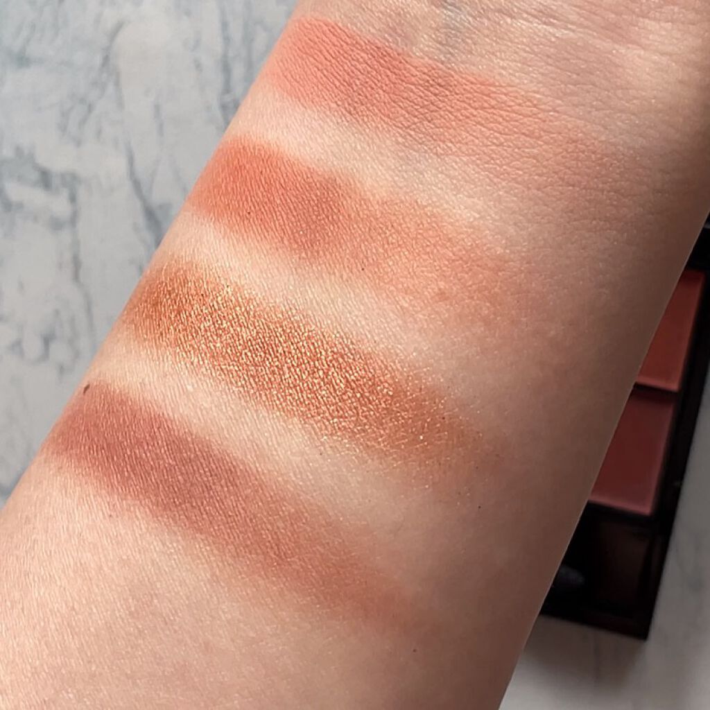ブルベさんめちゃめちゃ沼るカラーじゃないですか🥹?!私は右上が特にすき💞💞 しっとり系の粉質で高発色◎マットよりラメの方が密着感あるかな😏💘 良い女顔になれそうな配色だけど使い方によってはかわいい系にも使えそう✌️