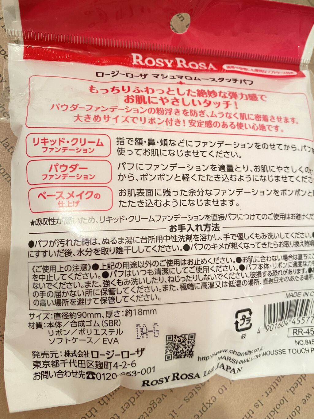 商品詳細情報ロージーローザ マシュマロムースタッチパフ