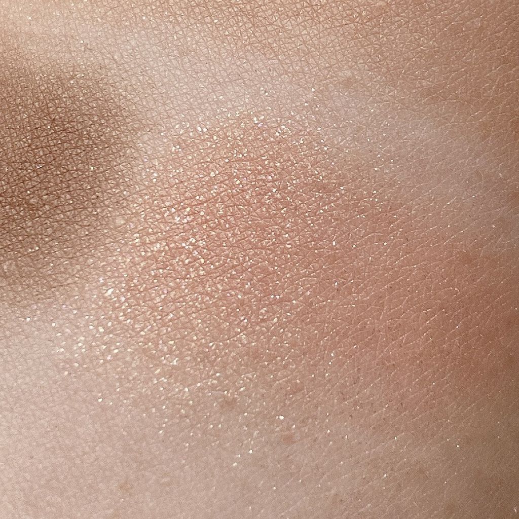 指で押さえてむにゅっと パールでキラキラ感はあるけど、細かいので本当に上品♡ 肌に乗せると見た目よりも明るいテラコッタオレンジに発色しました。 さらさらなのに伸びもよく、濃さも自由自在で、とても使いやすい&かわいい新作チークでした♡♡♡