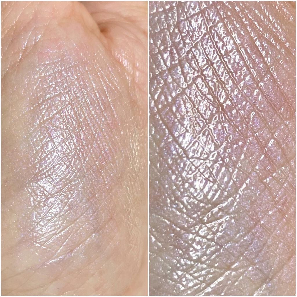 \かわいすぎて事件🤯💘⚡️濡れツヤハイライト/ 上品でキラキラのツヤが美しすぎると発売前から話題でしたね🙌 エナメル+キルティング加工のケースはツルツルぷにぷに♬ 薄型なので持ち運びにも便利!かわいいので無駄に持ち歩こう🙋♀️(?) 細かなピンクパールが温かみのあるツヤを演出してくれます💗 とてもしっとりしたパウダーで粉感がなく、繊細な輝きが長続きします👏 大粒の偏光ラメがギラギラ🤩🥳祭りじゃ〜!といった感じ笑 ホワイトカラーで輝きが目立つので濡れたようなツヤ感が出ます✨ マスクメイクでも頬骨より少し上のCゾーンに入れれば隠れずツヤ感が綺麗に映えます🥰 ラメが大粒で強いのでアイメイクの仕上げに入れても💮 結果万能なのとちょっと奇抜なの♥️ 両方文句なしにかわいかったので満足です🧚♀️笑