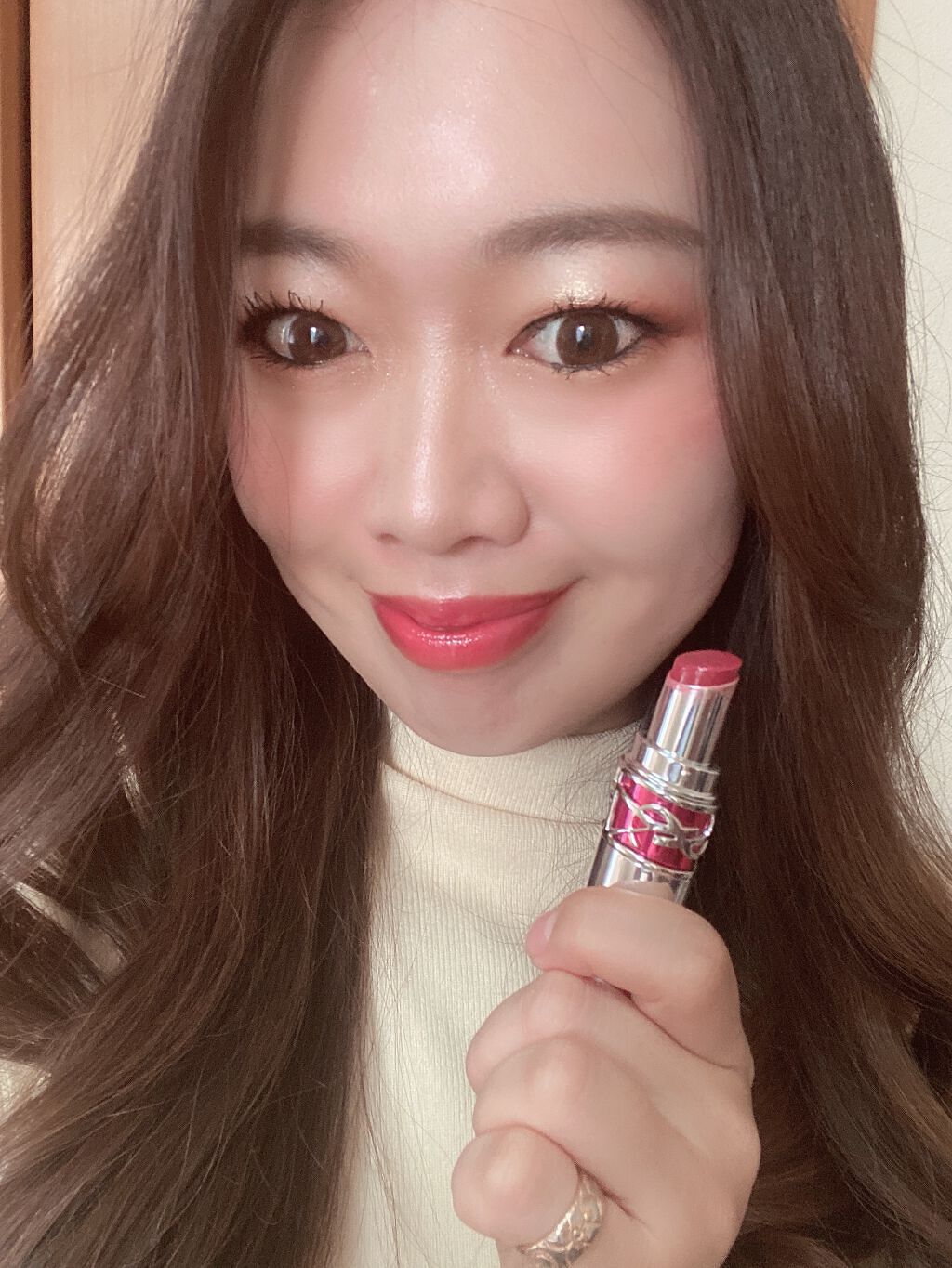 \\名品のイブサンのリップは実際どうなの?//YVESSAINTLAURENTBEAUTEルージュヴォリュプテシャインNo.153ロゼダンテル手に出したら濃く見えるけど唇に塗ったら全然濃くなくめっちゃ自然に馴染みます♡私は元々唇に色があるので...