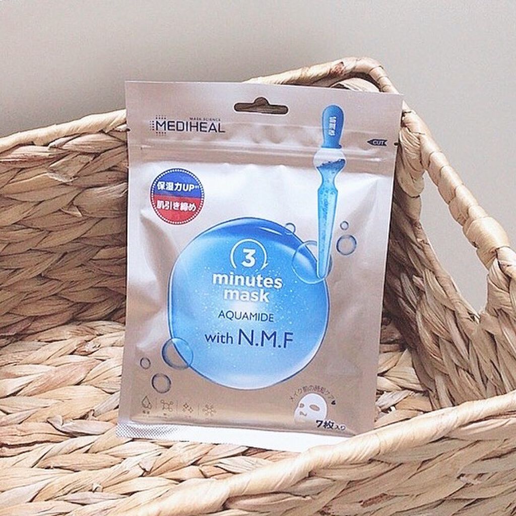 MEDIHEAL3ミニッツマスク:アクアマイドwithN.M.F1日1マスク😊1回3分で完了のスピーディー保湿ケア!忙しい朝、疲れた夜にメディヒールの時短マスク✨時短マスクは本当に1つ持っておくと使えるので好きです🙆♀️朝のスキンケアでゆっ...
