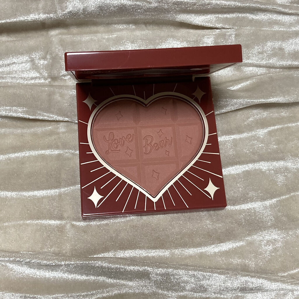 パレットの大きさは両手におさまるサイズです🤲 ピンクが好きなので購入しました。 ピンクブラウンっぽい感じになり思っていたよりも使いやすく活躍しそうな予感がします😌 チークはゴールドラメが入ってます。肌馴染み良いカラーです。 濃いピンクのラメが入っているので想像よりかなり可愛く仕がります🥰