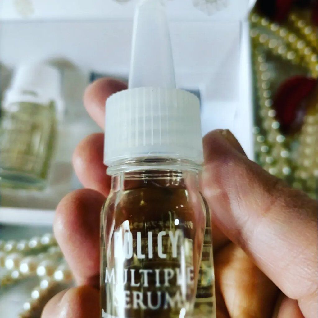 ポリシーマルチプルセラムプラセンタ・サイタイエキスと2つの原液+アルブチン・2種類のヒアルロン酸・甘草・ローマカミツレ・エラスチンの5つの原液を贅沢配合した美容液朝晩洗顔後タオルドライした後すぐのまっさらな肌に塗布します最初は特にたっ...