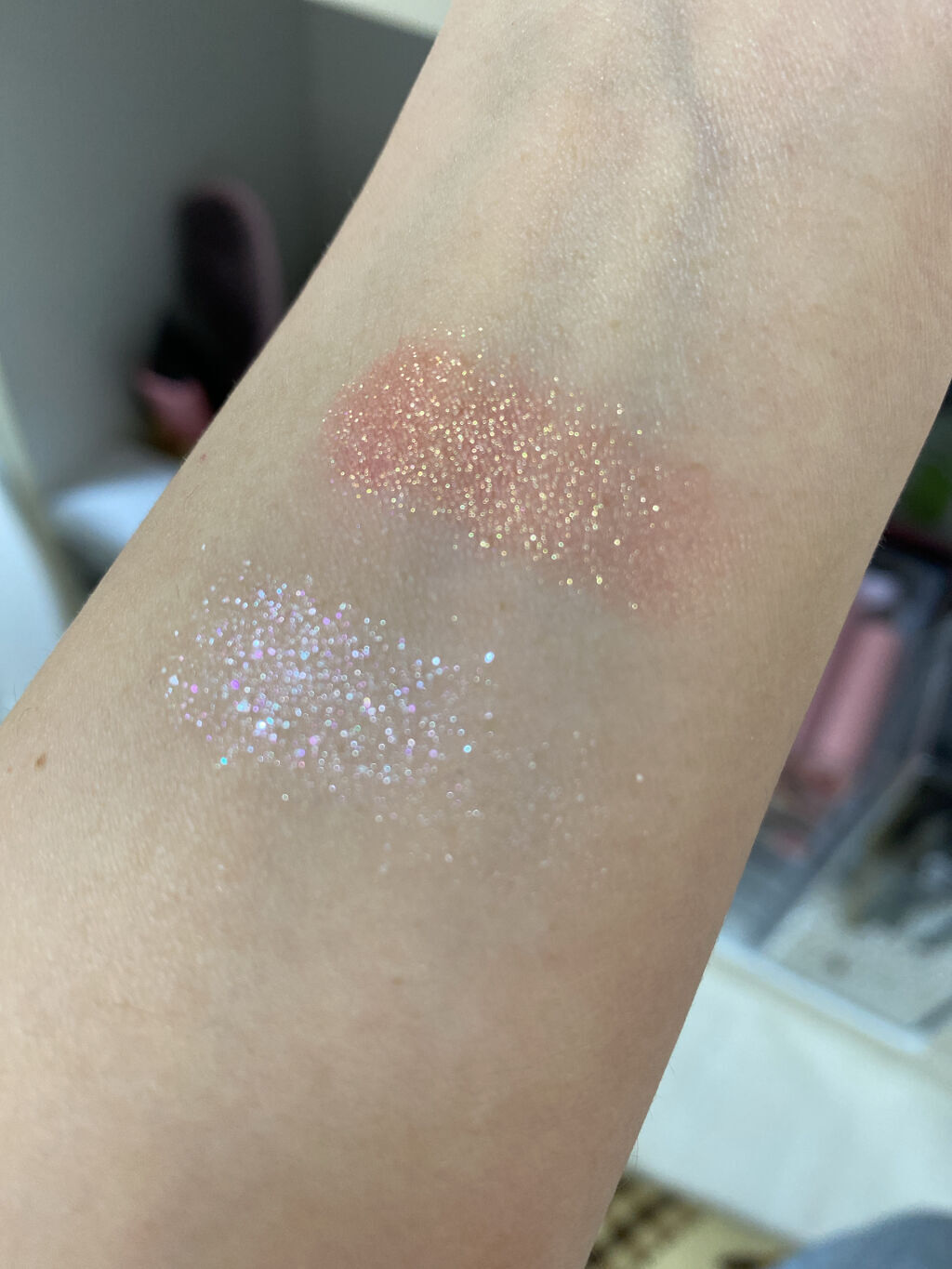 半額+送料で¥1685円!!!! めちゃくちゃお得に買えてテンション上がりましたー❤️ 配送もめちゃくちゃ早くて2日で届きました👏 もーめっちゃくちゃ可愛いー😭😭😭 特にラメは本当綺麗で最高すぎました🥺👏❤️ ラメ好きには本当オススメです🙏 ラメはしっとりしてるので粉とびの心配ないです🙌 発色は淡めです👌 韓国風メイクにピッタリ🇰🇷💓 思えた商品でした❤️❤️ オススメです🙌!