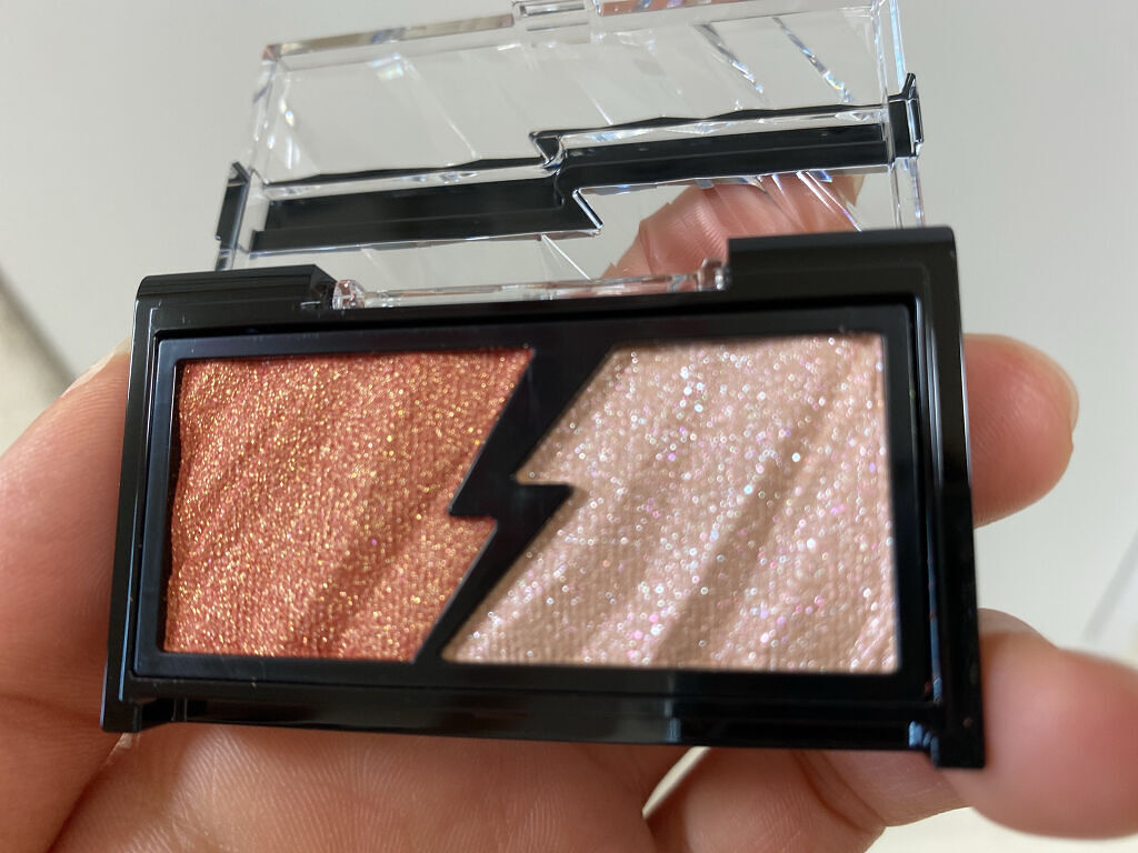 - 質感の違う2つの輝きで火花がクラッシュしたような発光感のある目元印象をつくるアイシャドウ。 まぶたにピタッと密着して、大粒ラメも落ちにくい処方設計。 繊細なカラーパールがきらめくエレクトリカルカラーと存在感のある大粒グリッターでまぶしい輝きを演出するフラッシュグリッターの2つの質感を掛け合わせて、輝き自由自在。 目元以外にも頬や鼻筋のハイライトに使える。