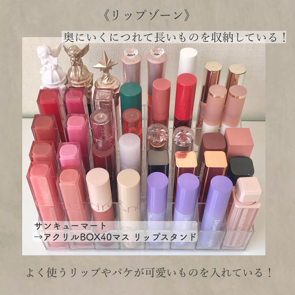 無印良品のケースには、私が大事にしているリップ類を収納しています🤭♡ あとデパコスのアイシャドウにも使ってます! 理由⇨厚みがあり、しっかり頑丈な作りだから割れの心配がないため❗️ 金額的には、『ダイソー`のが安いし買いやすい.