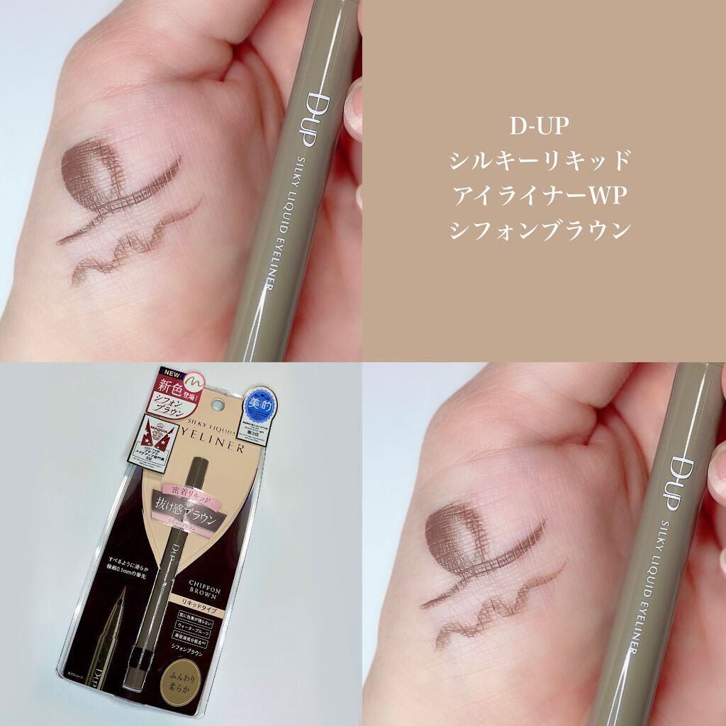 .ディーアップシルキーリキッドアイライナーWP\新色は盛れる万能ベージュ/ベスコス1位を受賞したリキッドアイライナーから新色が発売‼️新色の【チャコールモカ】は、黒でもグレーでも茶色でもない絶妙なカラー✨目元を強調するのではなく、深...