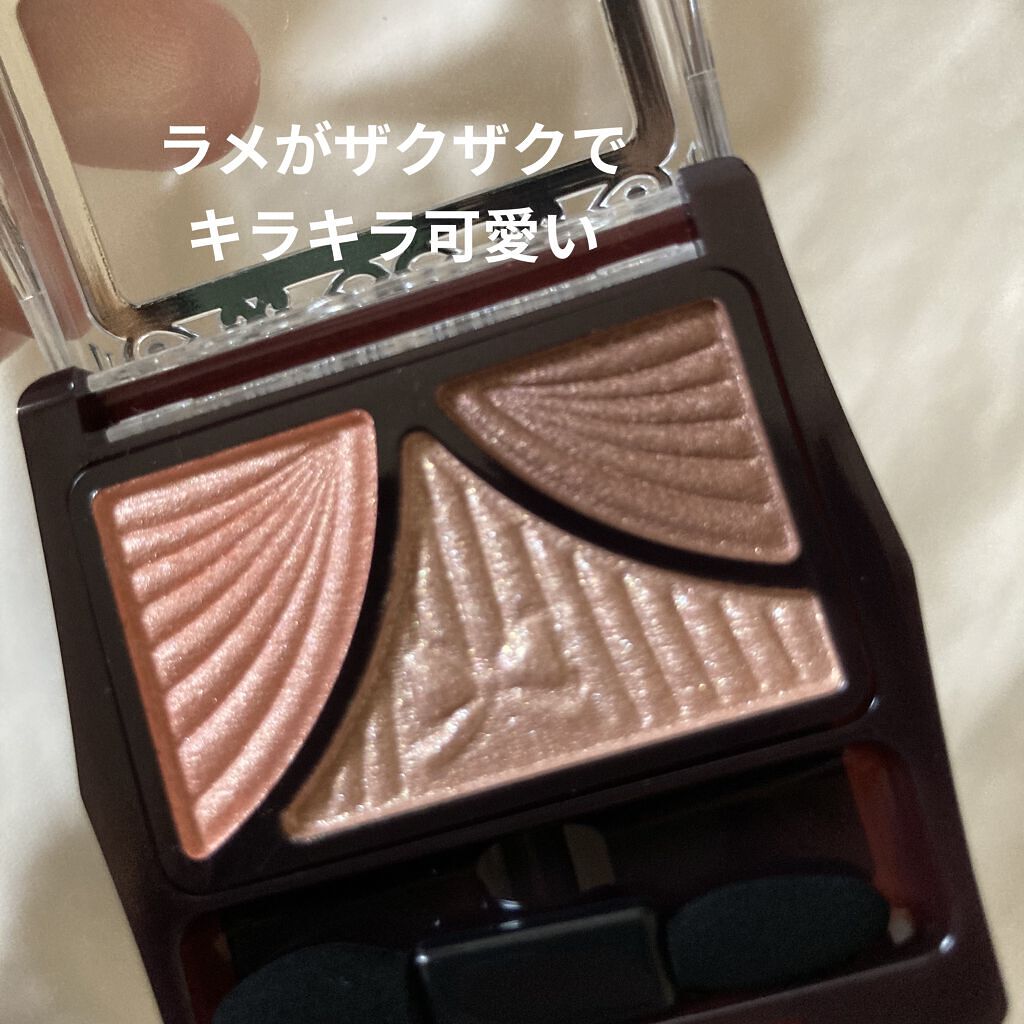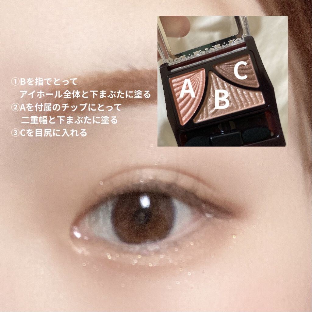 - パウダーなのにみずみずしい♥ 自然な立体感をつくりだす3色アイシャドウパレット 仕上げのコートで、ジューシー感&モチUP! メインカラー&ラインカラーはフィッティングオイル配合のしっとりパウダーで、 まぶたに吸いつくように溶け込み、ジューシーコートスフレで覆うことによって、 濡れたようにツヤめく愛されまぶたで透明感のある目元を演出します。