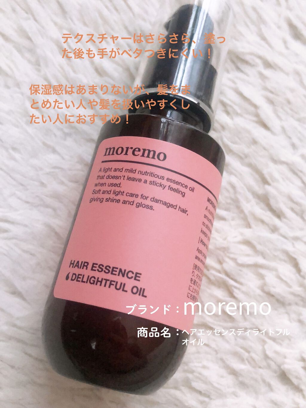 商品詳細情報moremo ヘアエッセンスディライトフルオイル 70ml / Hair Essence Delightful Oil 70ml