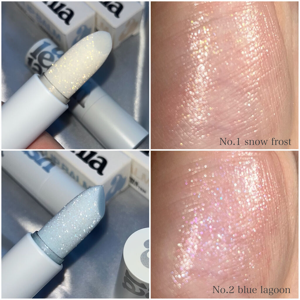 \unleashiaグレイシャーヴィーガンリップバーム/NO.1 SNOWFROSTスノウフロストNO.2 BLUELAGOONブルーラグーンキラキラ感が美しいリップ❄️#冬顔メイクテクニック...